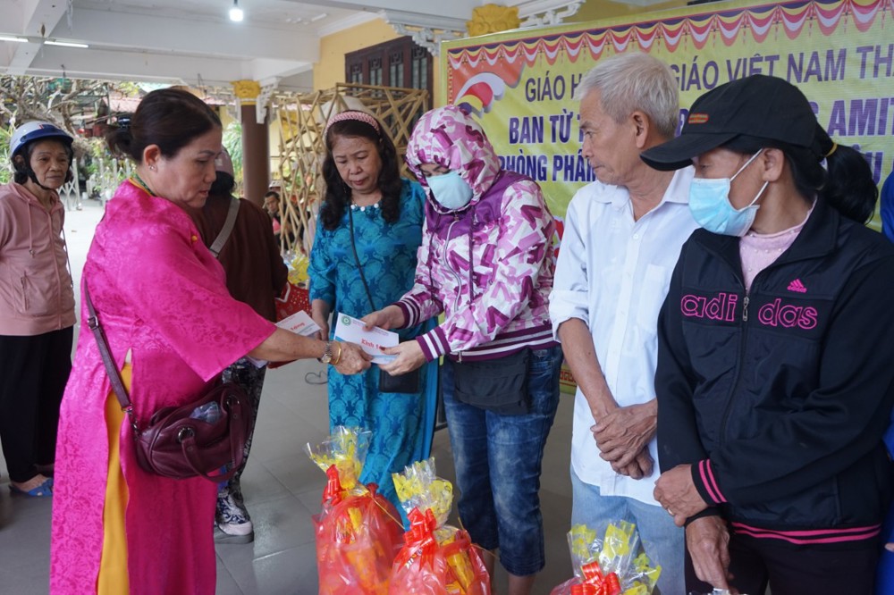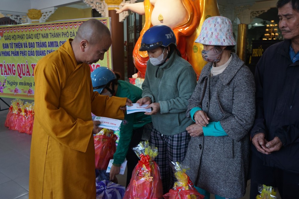 Tham dự buổi trao tặng quà có Thượng tọa Thích Tịnh Hòa – Trú xứ chùa Pháp Lâm, cố vấn đạo tràng Amita; Sư cô Thích Nữ Thanh Quế - Trưởng Ban từ thiện xã hội GHPGVN Tp Đà Nẵng; Phật tử Quảng Châu – Thành viên Ban từ thiện xã hội cùng quý nhà hảo tâm.