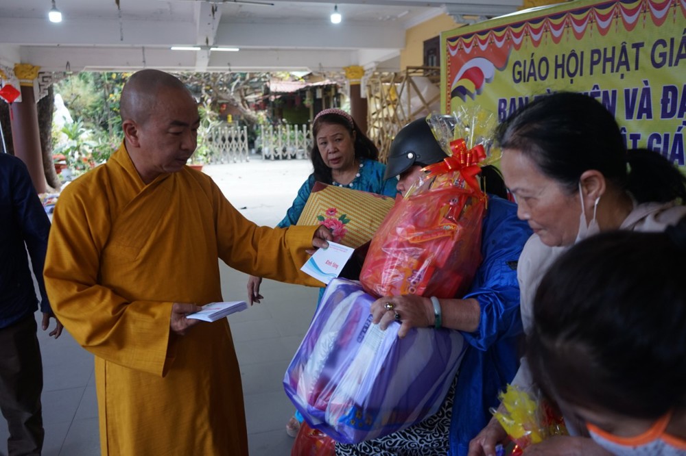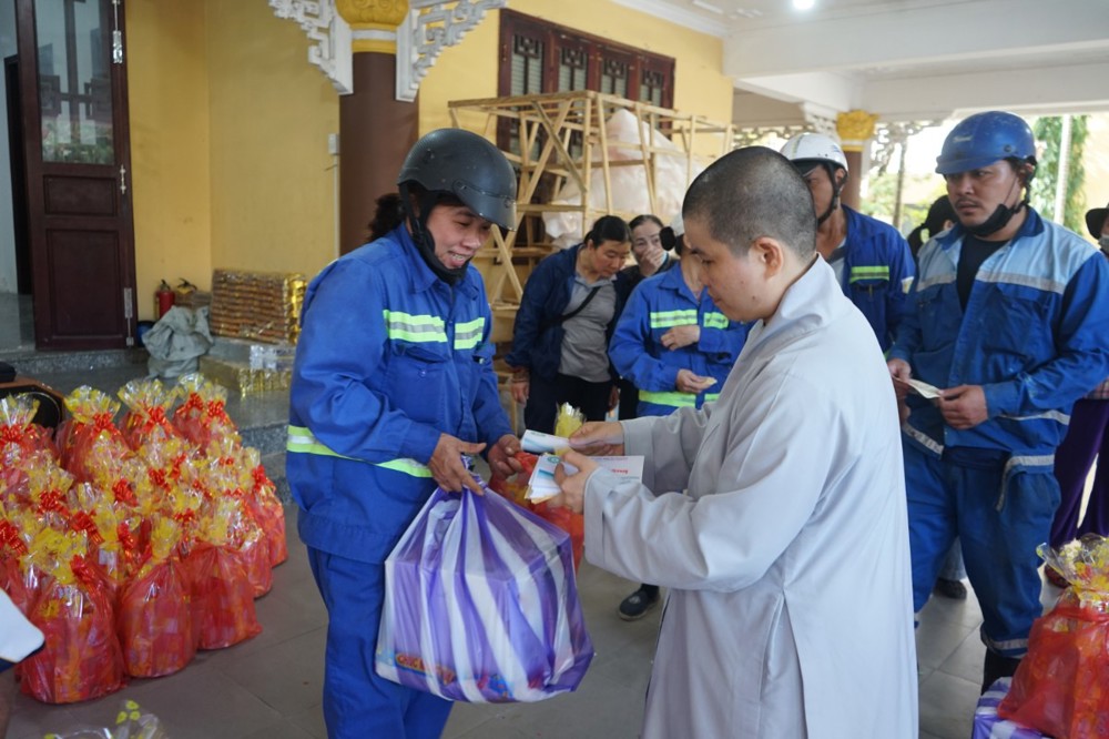 Sư cô Thích Nữ Thanh Quế đã có lời thăm hỏi, chia sẻ và động viên bà con đến nhận quà nhân dịp năm mới Bình Ngọ 2026. Với phần quà tuy không lớn về giá trị vật chất nhưng chứa đựng rất nhiều tình cảm của Tăng Ni, Phật tử gửi đến bà con nhân dịp tết đến xuân về, hy vọng sẽ giúp bà con vơi bớt những lo lắng trong việc sắm sửa đón tết.