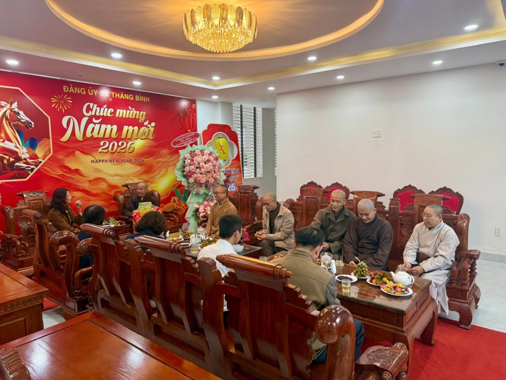 PSO – Sáng ngày 02/02/2026 (nhằm 15 tháng Chạp năm Ất Tỵ), trong không khí hân hoan đón Xuân mới và chào mừng kỷ niệm 96 năm Ngày thành lập Đảng Cộng sản Việt Nam (03/02/1930 – 03/02/2026), chư Tăng Ni trên địa bàn xã Thăng Bình, TP. Đà Nẵng đã tổ chức đoàn đến thăm, chúc Tết các cơ quan lãnh đạo địa phương.