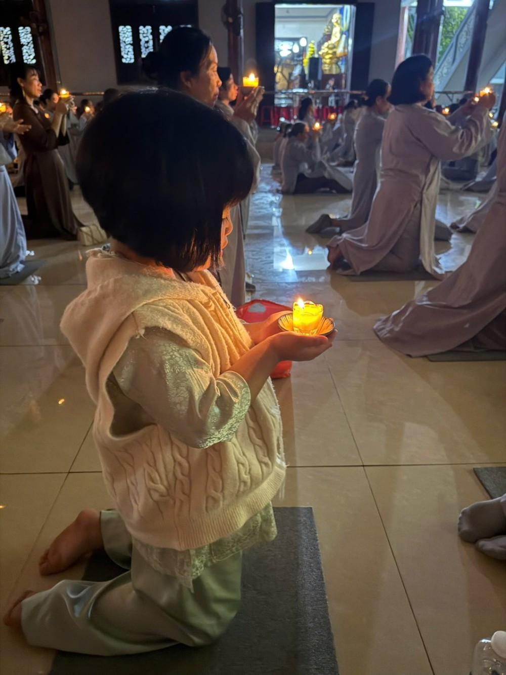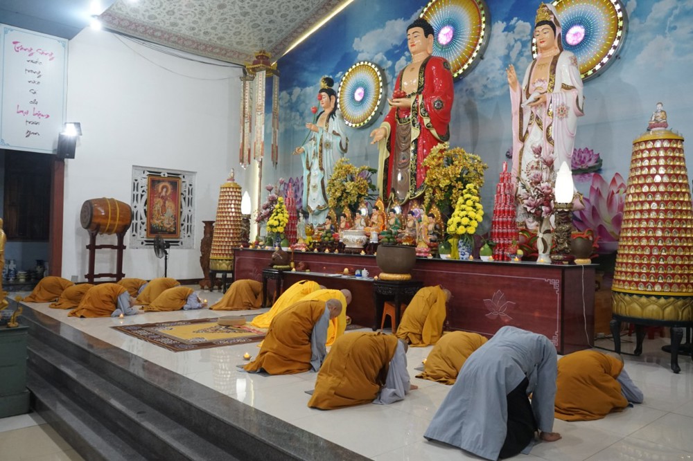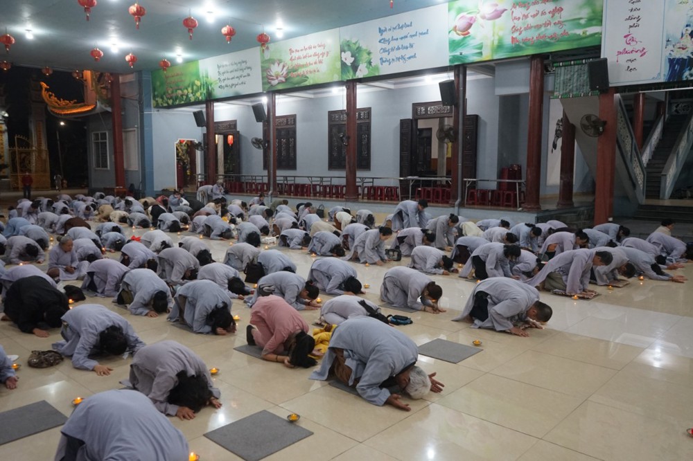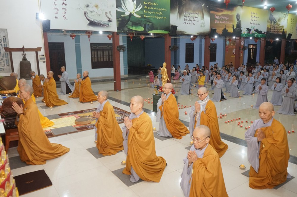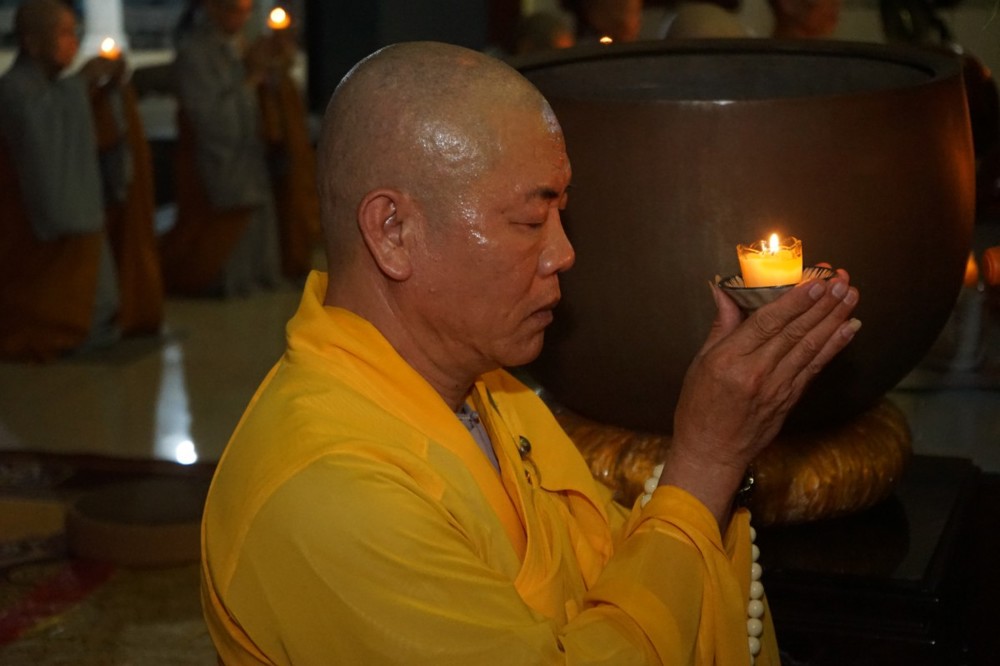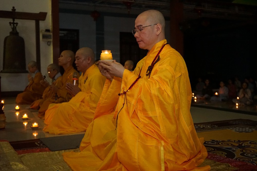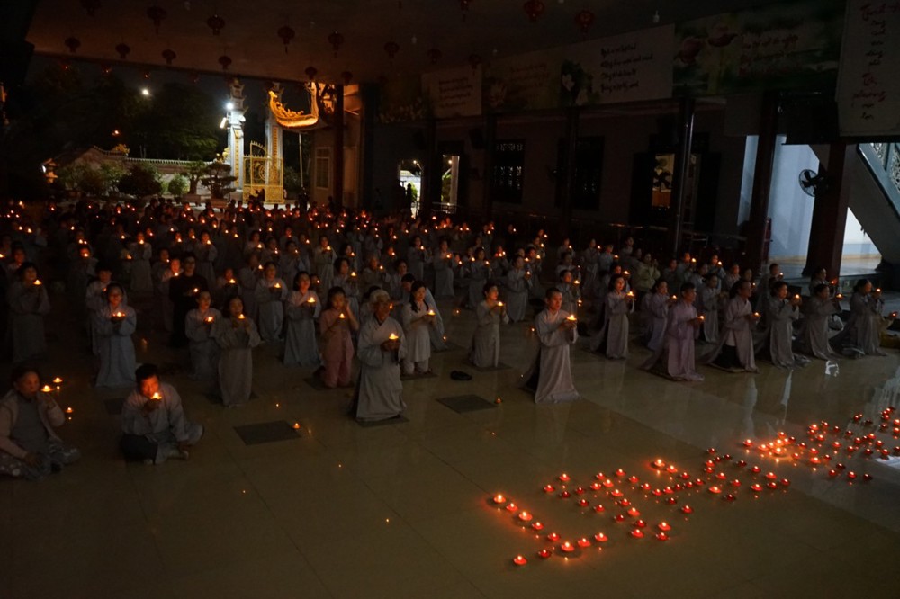 Trong đêm tối, những ngọn nến được dâng lên cúng dường Đức Phật A Di Đà, thắp sáng Diệu Pháp Đường chùa Bà Đa, là tấm lòng của những người con Phật hướng về Đức Từ phụ, nguyện một dạ chí thành hành trì pháp môn Tịnh độ để theo Ngài về cõi an lành.