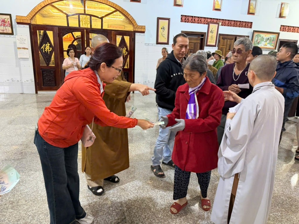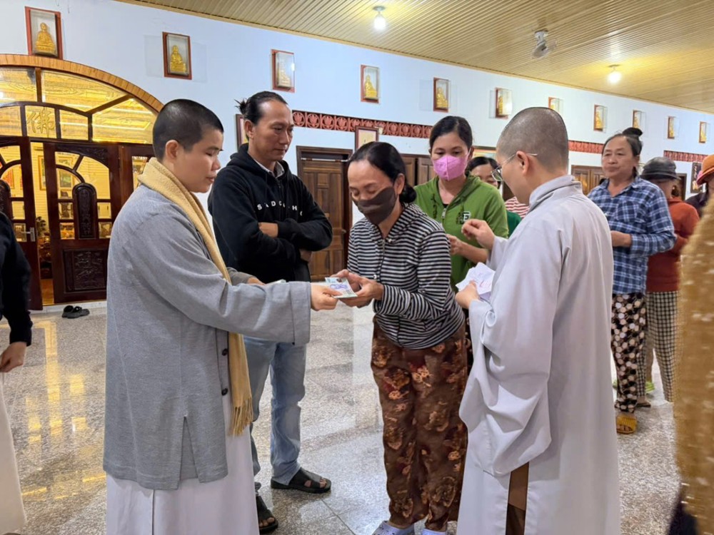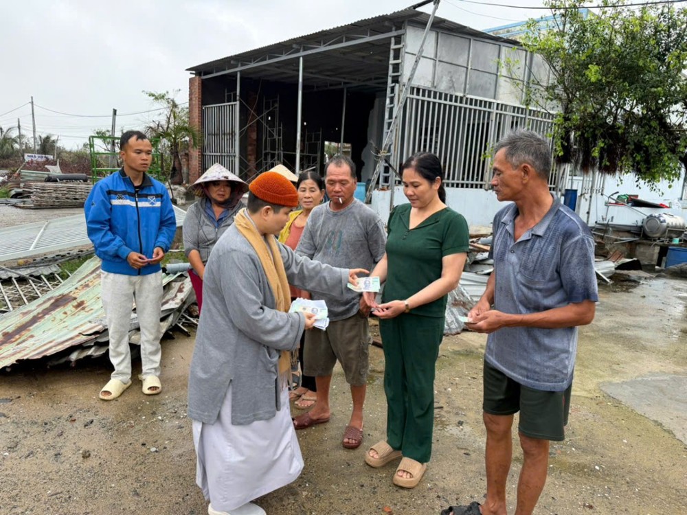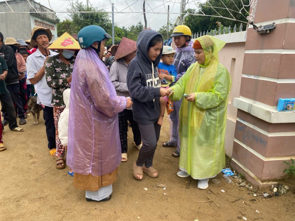 Dưới sự hướng dẫn của Thượng tọa Thích Thông Đạo - Ủy viên Hội đồng Trị sự, Phó trưởng ban Thường trực ban Trị sự GHPGVN Tp Đà Nẵng, Trú trì chùa Bà Đa và Sư cô Thích Nữ Thanh Quế - Trưởng ban Từ thiện xã hội GHPGVN Tp Đà Nẵng, Trú trì Tổ đình Bảo Quang sư nữ, đoàn đã đến thăm và trao tặng hơn 400 suất quà cho bà con tại xã Sơn Hòa; đồng thời đoàn đã thăm hỏi, động viên và trao tặng tịnh tài hỗ trợ bà con bị hư hại nhà cửa trong cơn bão số 13 tại thị trấn Sông Cầu, tỉnh Phú Yên cũ. Tổng kinh phí hỗ trợ bà con bị thiệt hại do thiên tai bão lũ tại tỉnh Phú yên do đoàn trao tặng gần 250 triệu đồng.