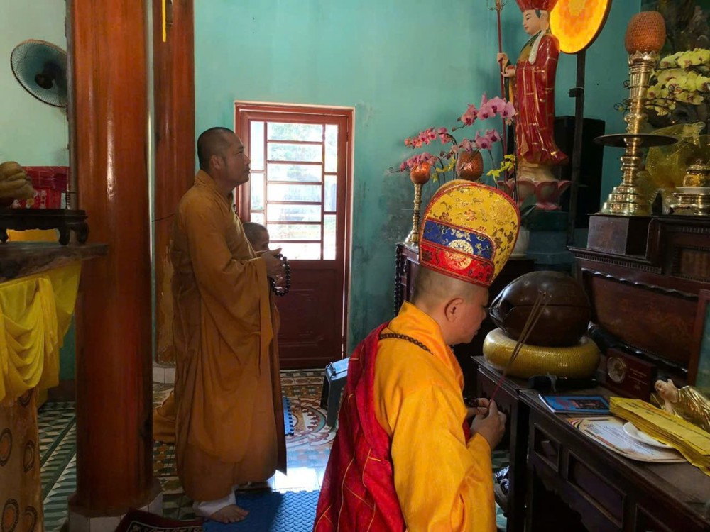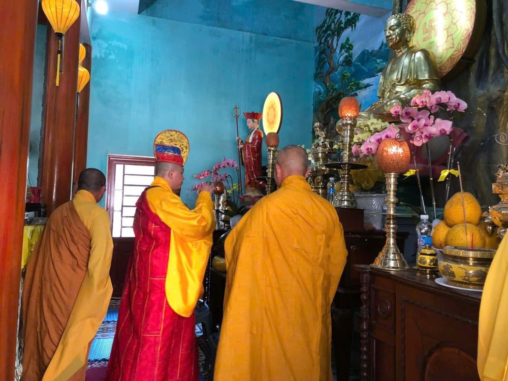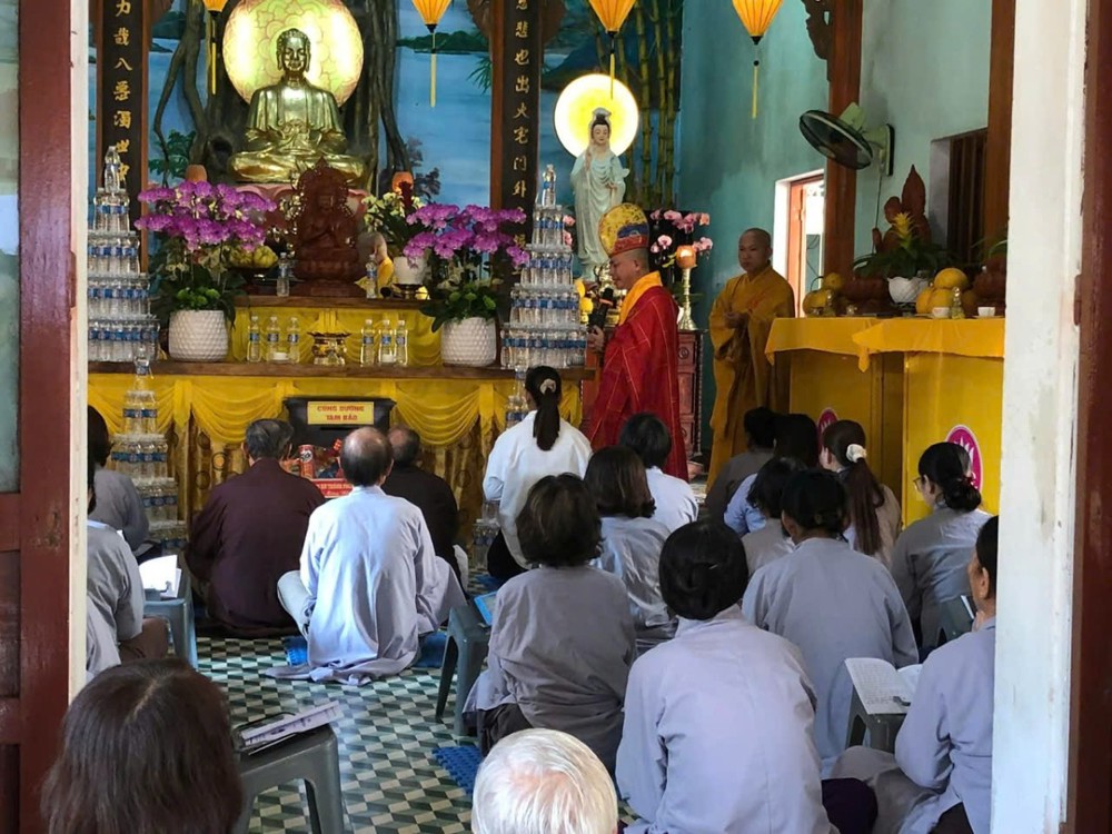 Quang lâm chứng minh và chủ trì buổi lễ, Thượng toạ Thích Quảng Tiến – Uỷ viên Hội đồng Trị sự, Phó Chánh Văn phòng 2 Trung Ương, Phó Trưởng Ban Tri sự Giáo hội Phật giáo Việt Nam TP. Đà Nẵng. Thượng toạ trực tiếp quản lý và điều hành các hoạt động Phật sự tại chùa Bình Quang cùng chư tôn đức Tăng đã niêm hương bạch Phật, cử hành các nghi thức truyền thống của đàn tràng Dược Sư, trì tụng kinh chú, xướng danh hiệu Đức Phật Dược Sư Lưu Ly Quang Như Lai, nhất tâm cầu nguyện quốc thái dân an, phong điều vũ thuận, dịch bệnh tiêu trừ, bá tánh an cư lạc nghiệp.