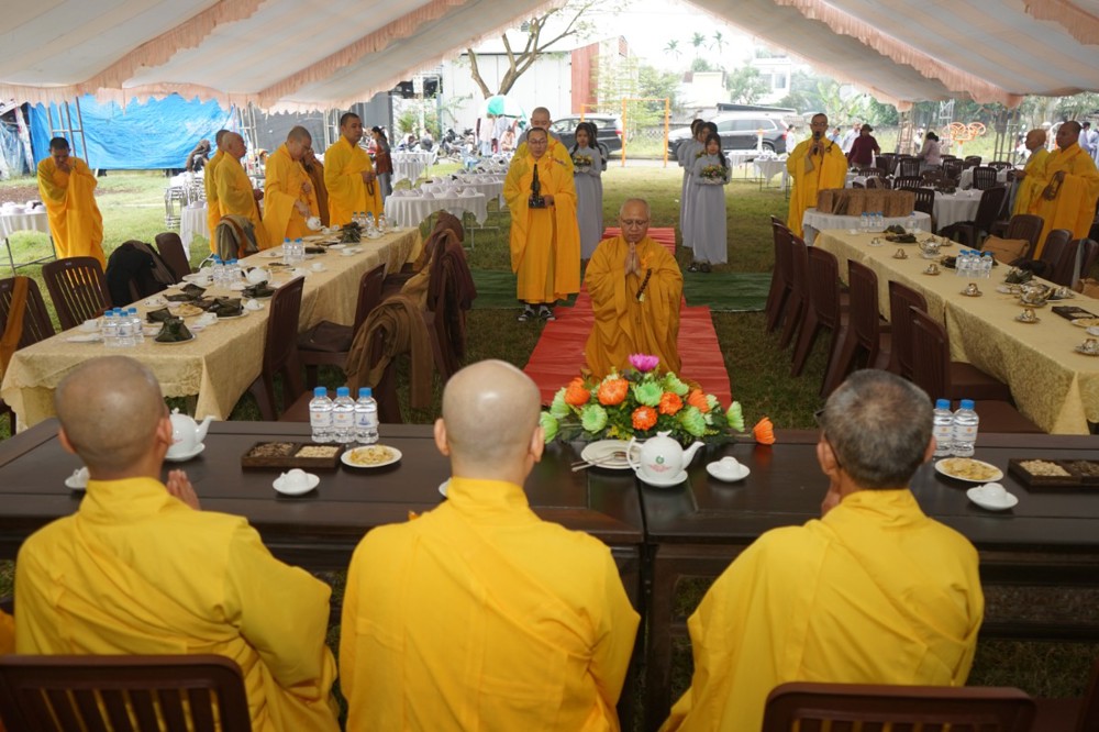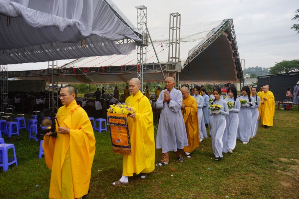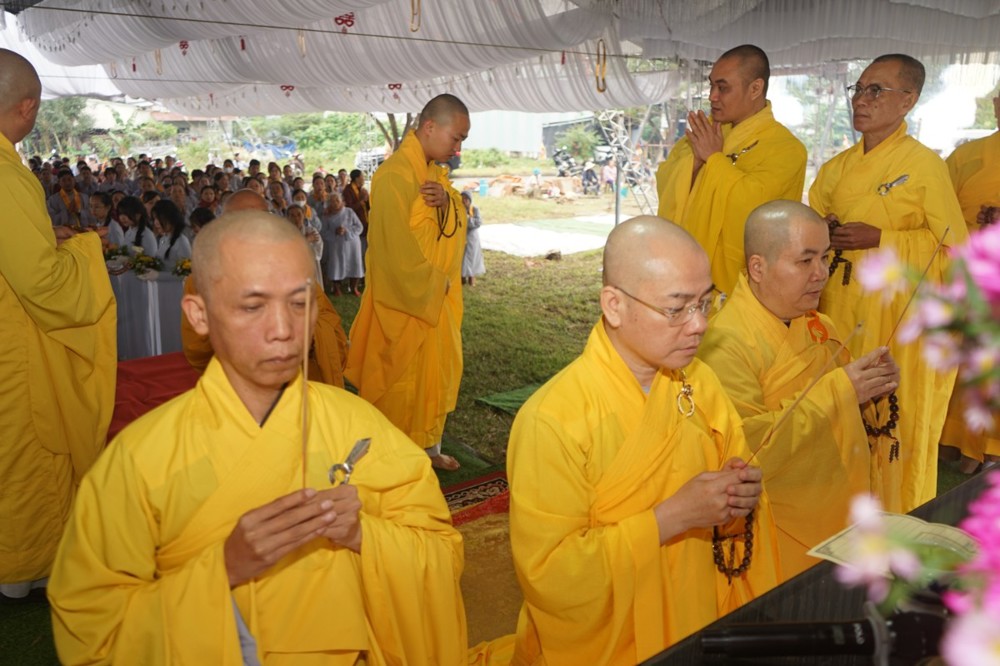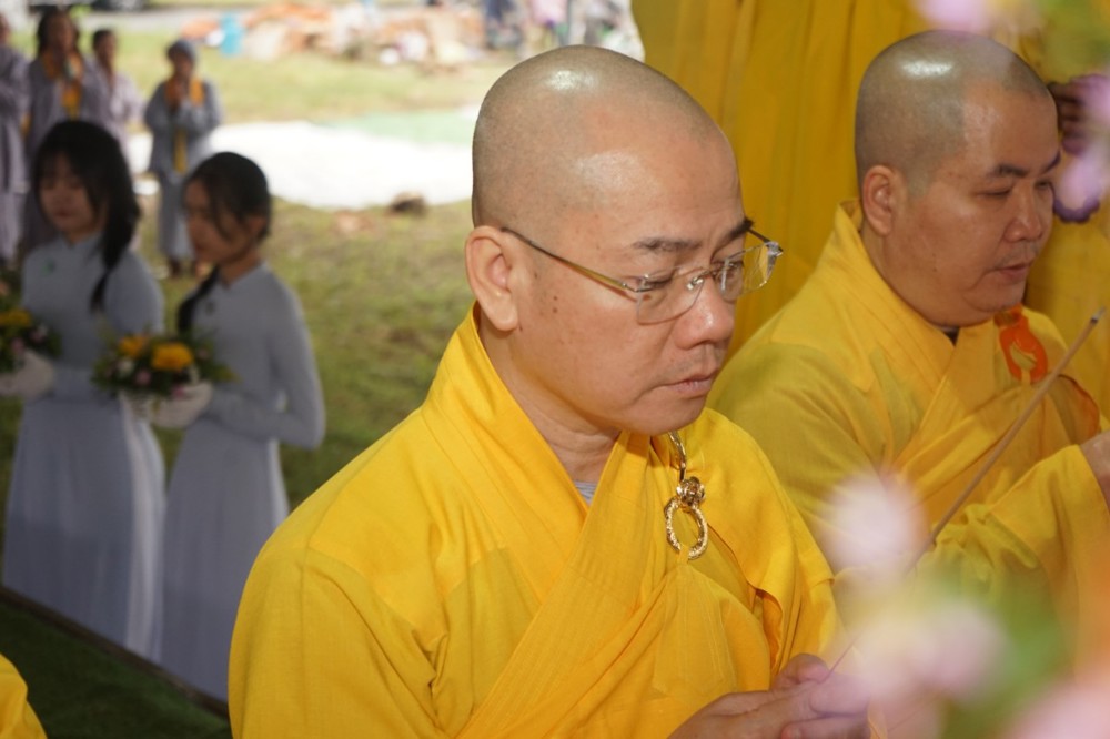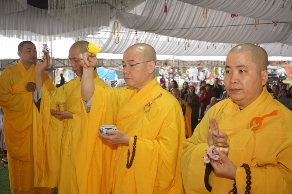 Quang lâm chứng minh và chú nguyện lễ rót đồng đúc tôn tượng Đức Bổn sư Thích Ca Mâu Ni có Thượng tọa Thích Thông Đạo - Ủy viên Hội đồng Trị sự, Phó trưởng ban Thường trực Ban Trị sự GHPGVN Tp Đà Nẵng; Thượng tọa Thích Thanh Bảo – Phó thư ký, Chánh văn phòng Ban Trị sự GHPGVN Tp Đà Nẵng; Thượng tọa Thích Huệ Chấn - Trưởng ban Văn hóa Phật giáo Ban Trị sự GHPGVN Tp Đà Nẵng cùng Chư Tôn đức Tăng Ni trên địa bàn thành phố.