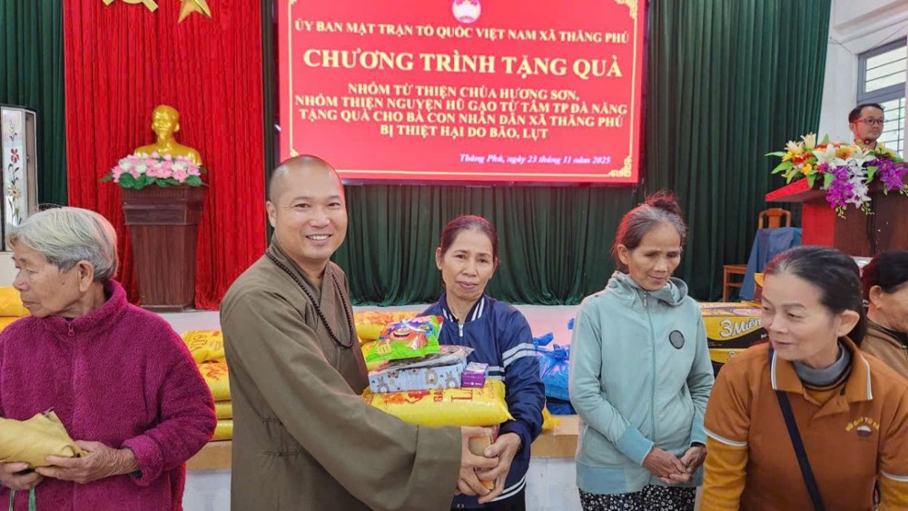 PSO – Hôm nay, ngày 23 tháng 11 năm 2025, (Nhằm ngày Mồng 4 tháng 10 năm Ất Tỵ). Trong tinh thần từ bi và phụng sự của đạo Phật, dưới sự hướng dẫn của Thượng tọa Thích Bảo Ân; Ủy Viên Ban Trị sự GHPGVN Tp Đà Nẵng, Trụ trì chùa Phước Ấm (xã Thăng An) và Thượng tọa Thích Bảo Tuyền; Ủy Viên Ban Trị sự GHPGVN Tp Đà Nẵng, Trụ trì chùa Hương Sơn (xã Xuân Phú). Kết nối với Nhóm từ thiện Hũ Gạo Từ Tâm, Nhóm Thiện nguyện chùa Hương Sơn Tp. Đà Nẵng đã tổ chức chương trình trao tặng 80 phần quà đến các hộ gia đình có hoàn cảnh khó khăn tại xã Thăng Phú, Tp. Đà Nẵng.