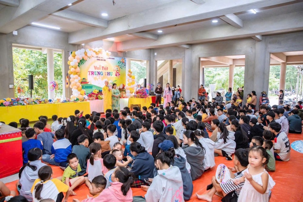 Buổi lễ diễn ra trong không khí vui tươi, đầm ấm với sự tham gia của 700 em nhỏ cùng phụ huynh. Đặc biệt, chương trình có sự hiện diện của bà Lê Thị Thu Bích – chuyên viên Ủy ban Mặt trận Tổ quốc Việt Nam xã Tam Xuân, cùng các quý Phật tử, mạnh thường quân và tình nguyện viên đã đồng hành, chung tay góp phần làm nên một mùa Trung Thu trọn vẹn cho các em. Mặc dù chùa Lộc Tân hiện vẫn đang trong quá trình xây dựng, cơ sở vật chất còn nhiều thiếu thốn, nhưng với tấm lòng từ bi và tinh thần phụng sự, Đại đức Thích Thông Khiêm vẫn cố gắng kết nối, gieo duyên cùng các mạnh thường quân và Phật tử gần xa để tổ chức cho các em nhỏ một mùa Trung Thu ấm áp, đầy yêu thương và ý nghĩa.
