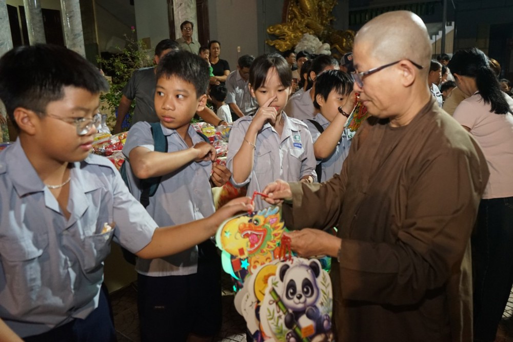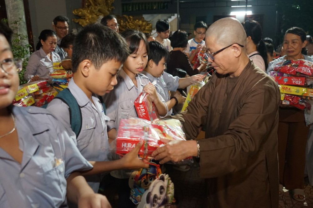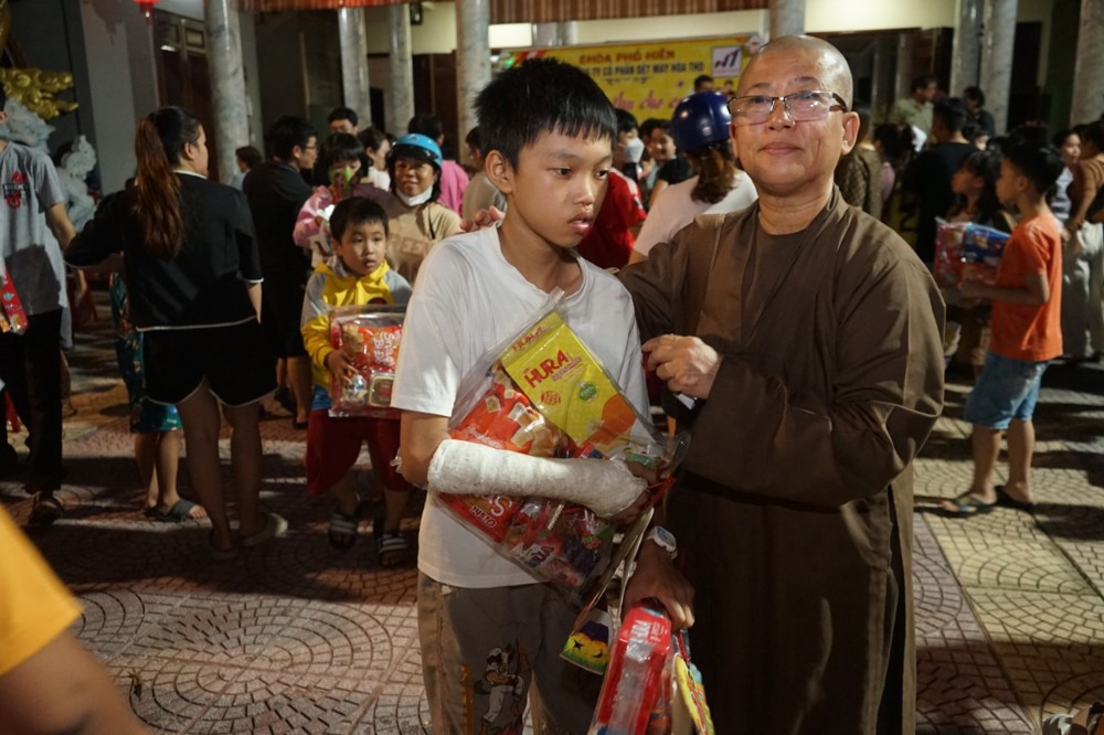 Trước đó, vào tối ngày 12/8 Ất Tỵ (03/10/2025), chùa Phổ Hiền đã tổ chức trao tặng 100 suất quà Trung thu cho các cháu thiếu nhi khuyết tật nhằm chia sẻ những bất hạnh của các cháu trong cuộc sống, đem lại niềm vui và động lực để các cháu tiếp tục vươn lên trong cuộc sống.
