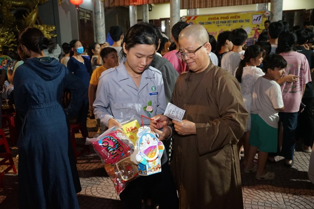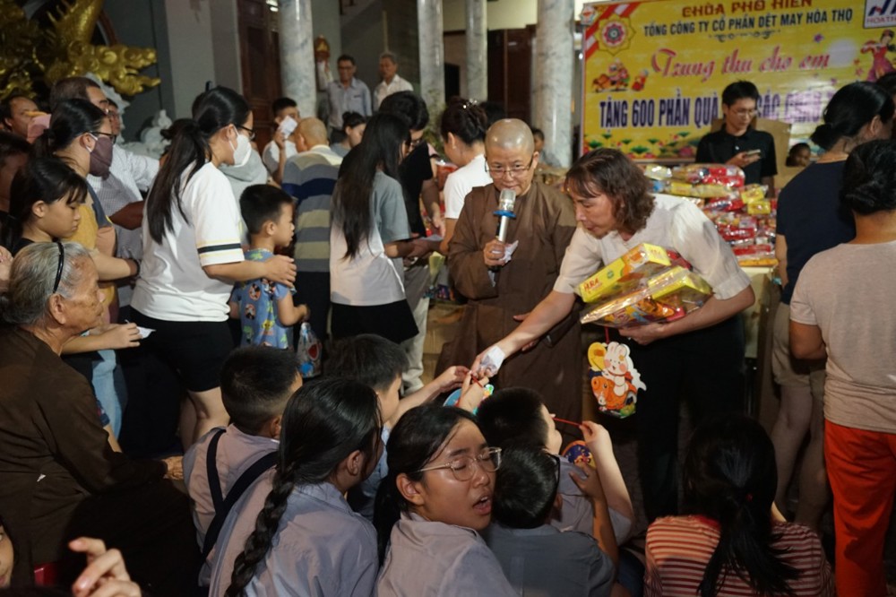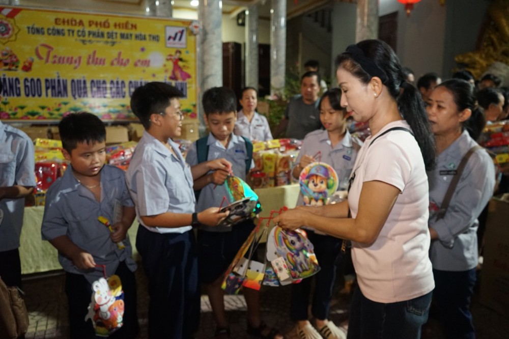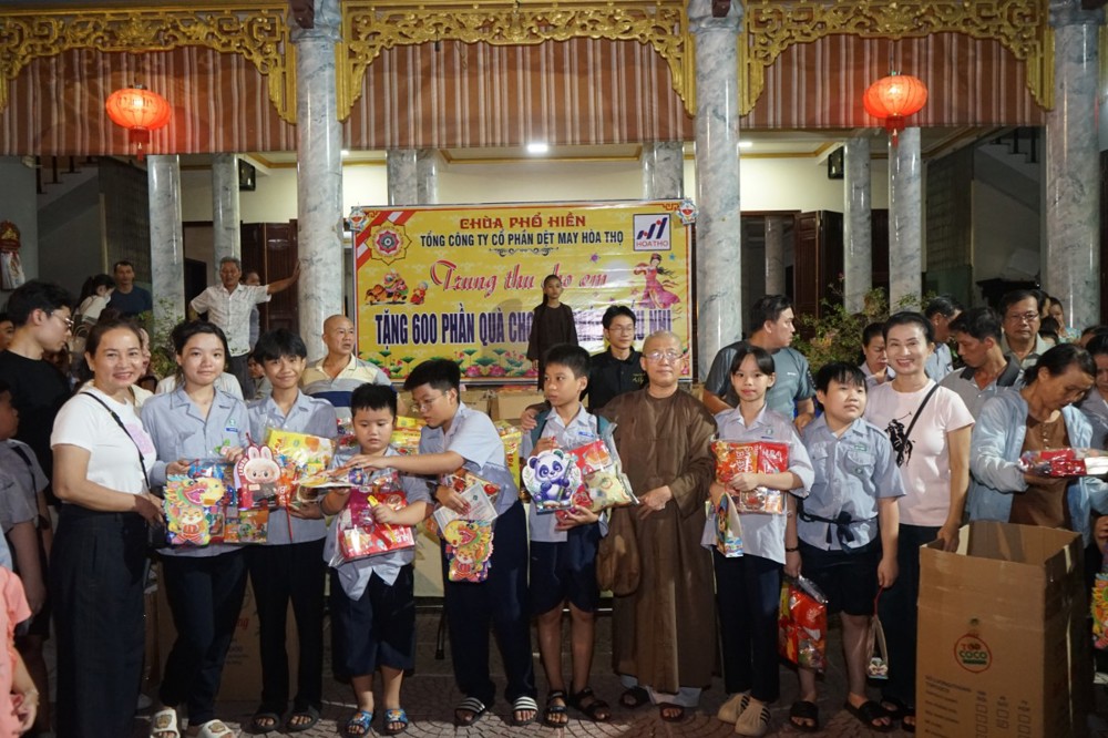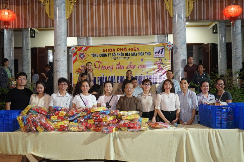 Nhằm chia sẻ và tạo niềm vui cho các em thiếu nhi, tối ngày 14/8 Ất Tỵ (nhằm ngày 05/10/2025), Sư cô Thích Nữ Minh Hiền - Ủy viên Thường trực Ban Trị sự GHPGVN Tp Đà Nẵng, Trú trì chùa Phổ Hiền cùng Ni chúng, Phật tử chùa Phổ Hiền – 02 Trần Huy Liệu, phường Hòa Cường, Tp Đà Nẵng và Công ty Cổ phần dệt may Hòa Thọ đã tổ chức chương trình “Trung thu cho em”, trao tặng 600 suất quà Trung thu đến các em nhỏ tại địa phương.