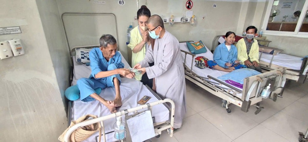 PSO – Với tinh thần Từ Bi của những người con Phật và mong muốn xoa dịu nổi đau cho những mảnh đời bất hạnh, ngày 22/4/2026 (nhằm ngày 06/3 Bính Ngọ), Ni sư Thích Nữ Minh Hiền - Ủy viên Thường trực Ban Trị sự GHPGVN Tp Đà Nẵng, Trú trì chùa Phổ Hiền (02 Trần Huy Liệu, phường Hòa Cường, Tp Đà Nẵng) cùng các Phật tử đã đến thăm và trao tặng quà cho các bệnh nhân đang điều trị tại khoa bỏng bệnh viện Đà Nẵng, bệnh viên Ung bướu và bệnh viện tâm thần Đà Nẵng.Tại khoa Bỏng bệnh viện Đà Nẵng, đoàn đã trao tặng nạn nhân vụ cháy nhà ngày 19/4 số tiền 20 triệu đồng và trao tặng các bệnh nhân tại khoa Bỏng 20 triệu đồng.