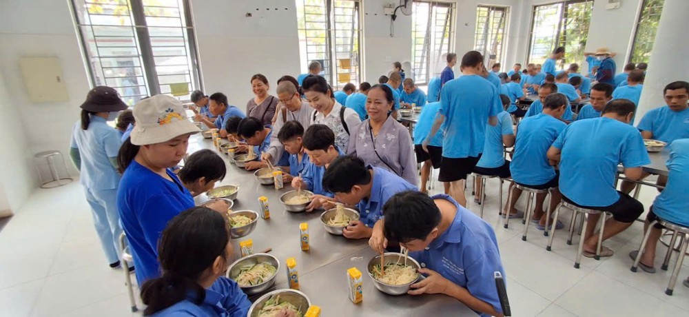 Chiều cùng ngày là những suất ăn chứa đầy tình thương yêu dành cho các bệnh nhân bệnh viện Tâm thần Đà Nẵng để bù đắp cho những thiệt thòi cho các bệnh nhân nơi đây.
