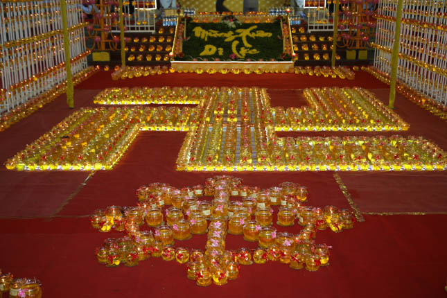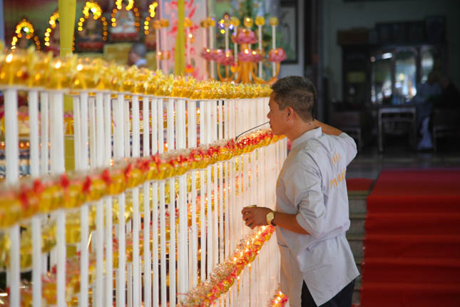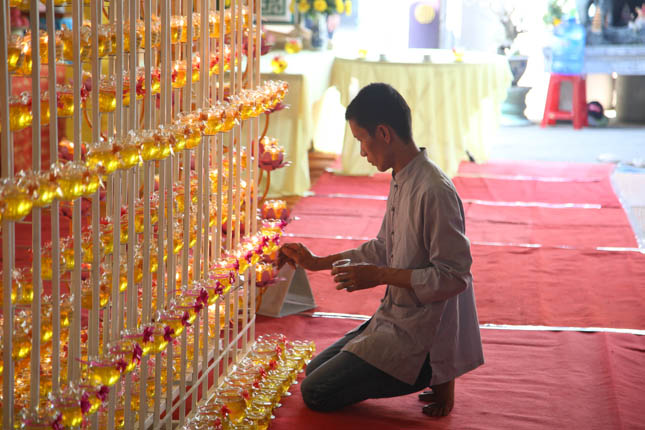 Người dân trong khu vực cũng có cơ hội được tự tay chăm sóc các ly đèn đêm Hội Dâng đèn cúng Phật và chiêm ngưỡng thế giới diệu huyền của ánh sáng từ những ngọn nến lung linh. Pháp hội châu viên người người hoan hỷ đón chào năm mới an khang thịnh vượng đến với mọi nhà.