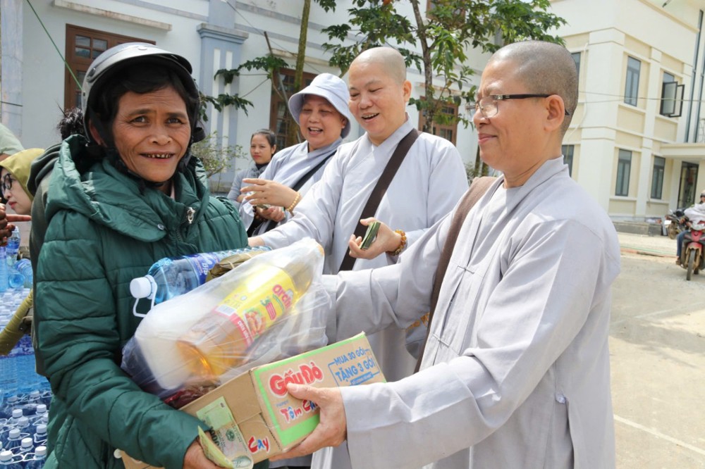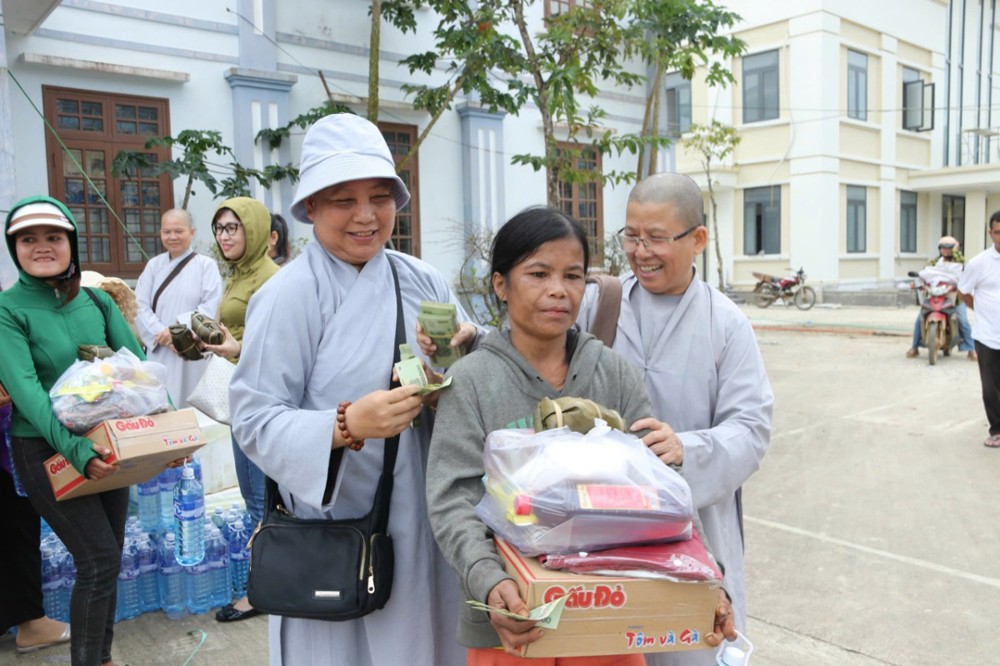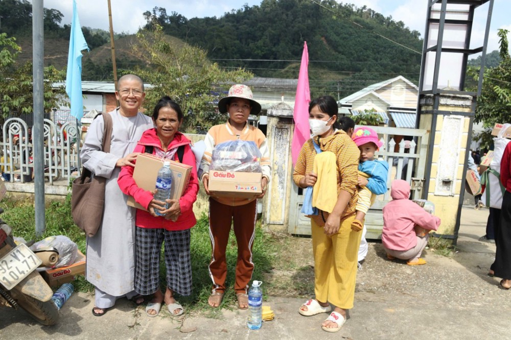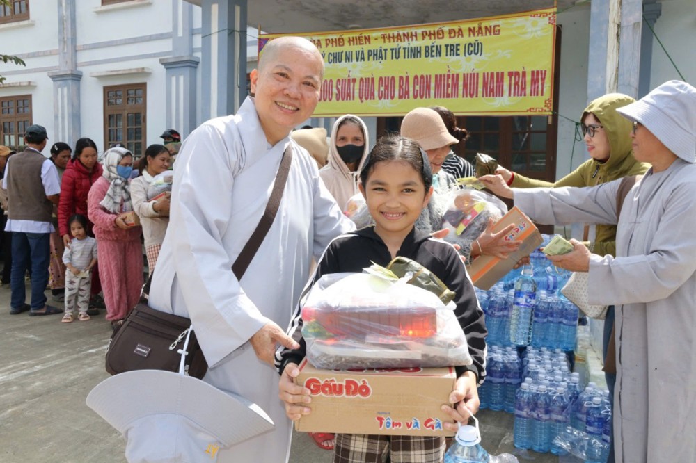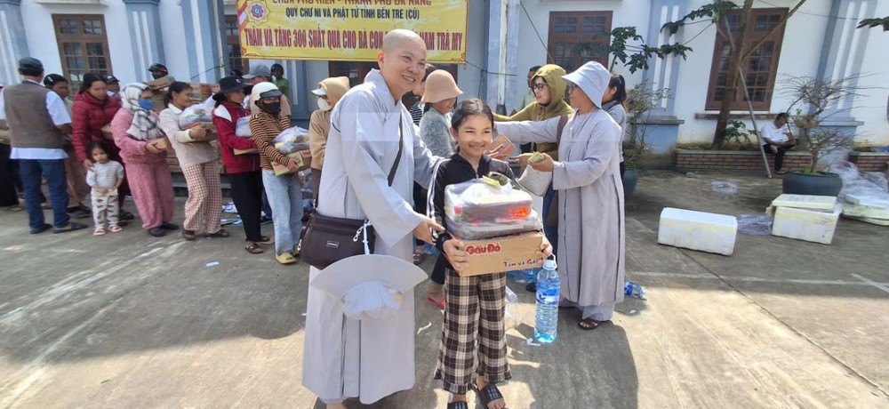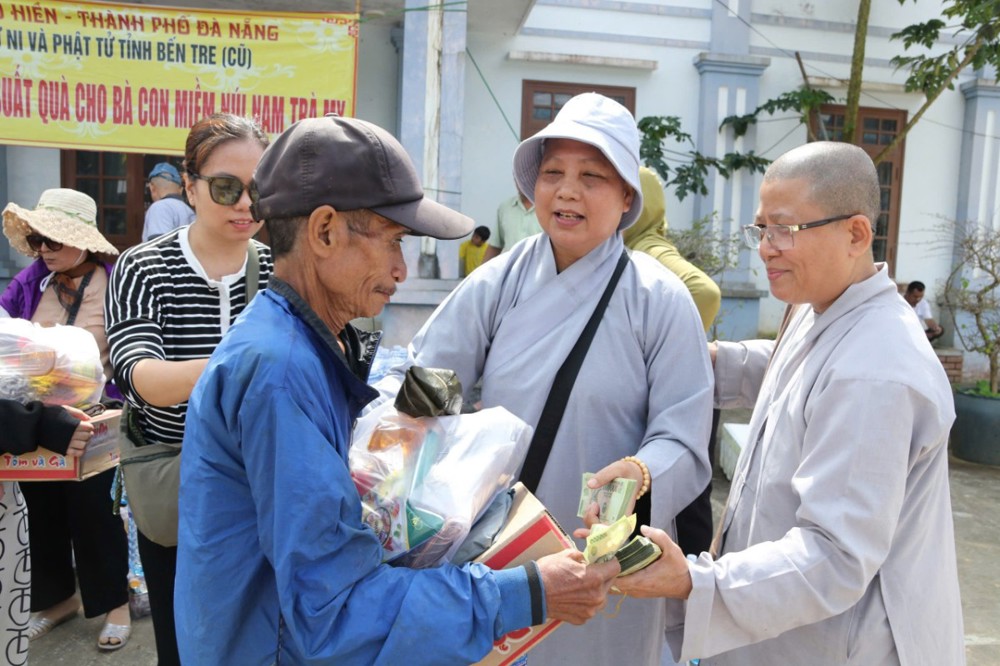 Thấu hiểu và cảm thông, với tinh thần chia sẻ yêu thương, thực hành hạnh Từ Bi của những người con Phật, ngày 14 tháng 11 năm 2025, Ni sư Thích nữ Minh Hiền - Ủy viên thường trực Ban Trị sự GHPGVN Tp Đà Nẵng, Trú trì chùa Phổ Hiền (02 Trần Huy Liệu, phường Hòa Cường, Tp Đà Nẵng) cùng Ni sư Ni sư Thích Nữ Minh Ngọc – Trú trì chùa Phúc An; Ni sư Thích Nữ Như Uyên – Trú trì chùa Từ Huệ thuộc tinh Bến Tre (cũ) đã hướng dẫn Phật tử, các nhà hảo tâm đến thăm, động viên và trao tặng 300 suất quà với tổng trị giá 180 triệu đồng cho bà con bị thiệt hại nặng tại xã Trà Giáp, Tp Đà Nẵng.