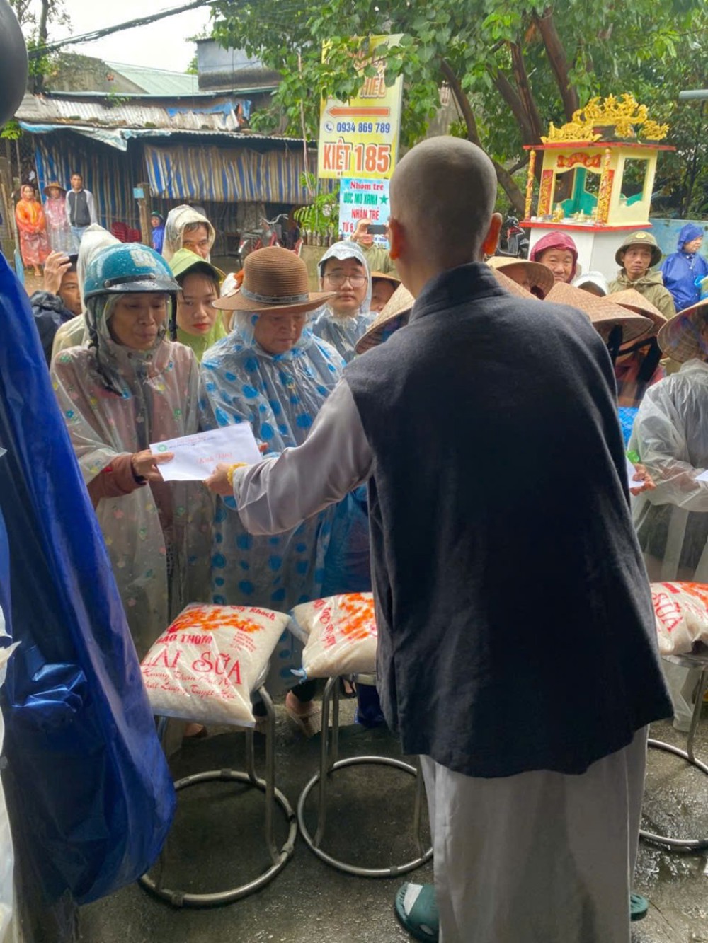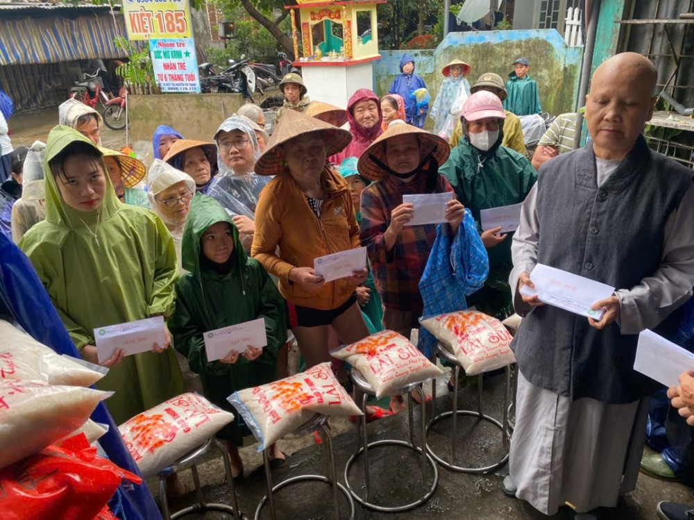 Trên tinh thần Từ Bi của những người con Phật, nhằm chia sẻ tình thương trước sự khó khăn của bà con vùng lũ, hôm nay ngày 05 tháng 11 năm 2025 , Ni Sư Thích Nữ Diệu Tín - Trú trì Chùa Phục Đán, phường Thanh Khê, Tp Đà Nẵng cùng quý Phật tử đã đến thăm động viên, chia sẻ trao tặng 200 suất quà gồm tịnh tài và tịnh vật với tổng trị giá 100 triệu đồng cho bà con khu vực phường Phú Hậu, một trong những khu vực ngập lũ nặng trong nhiều ngày qua tại Tp Huế.