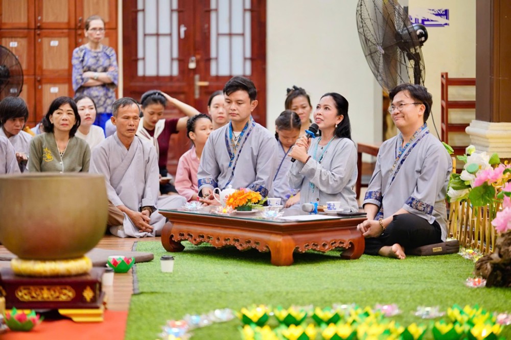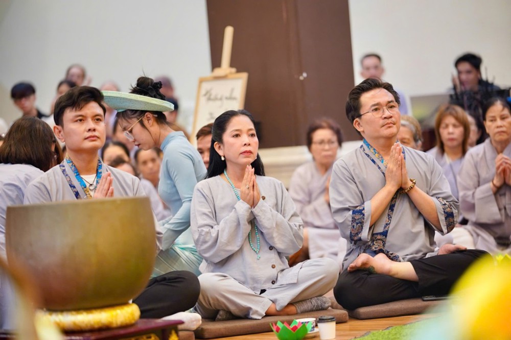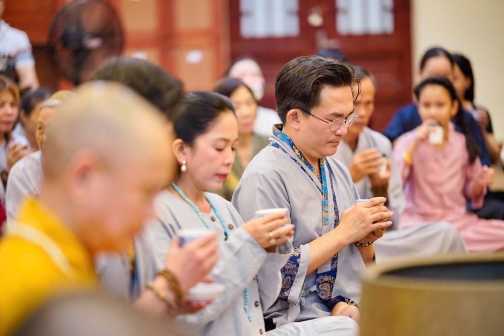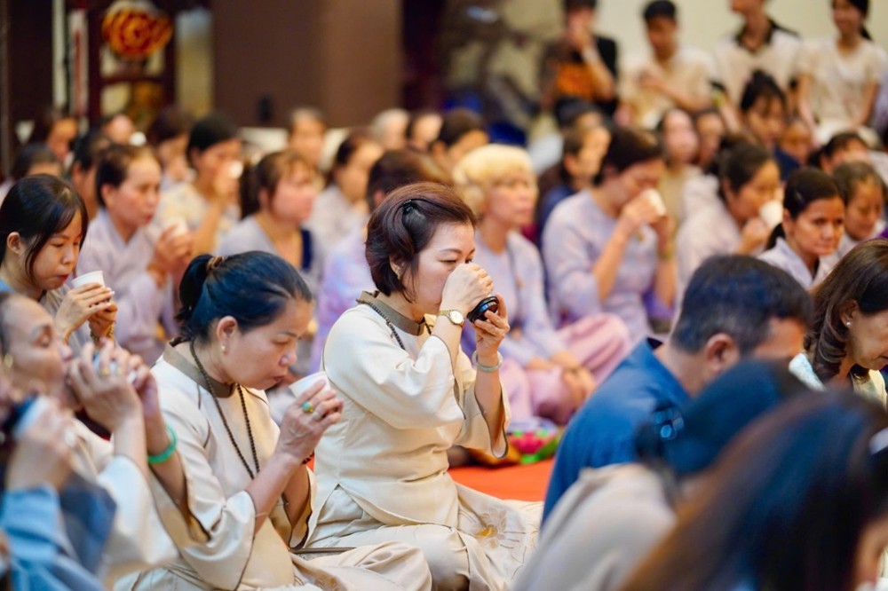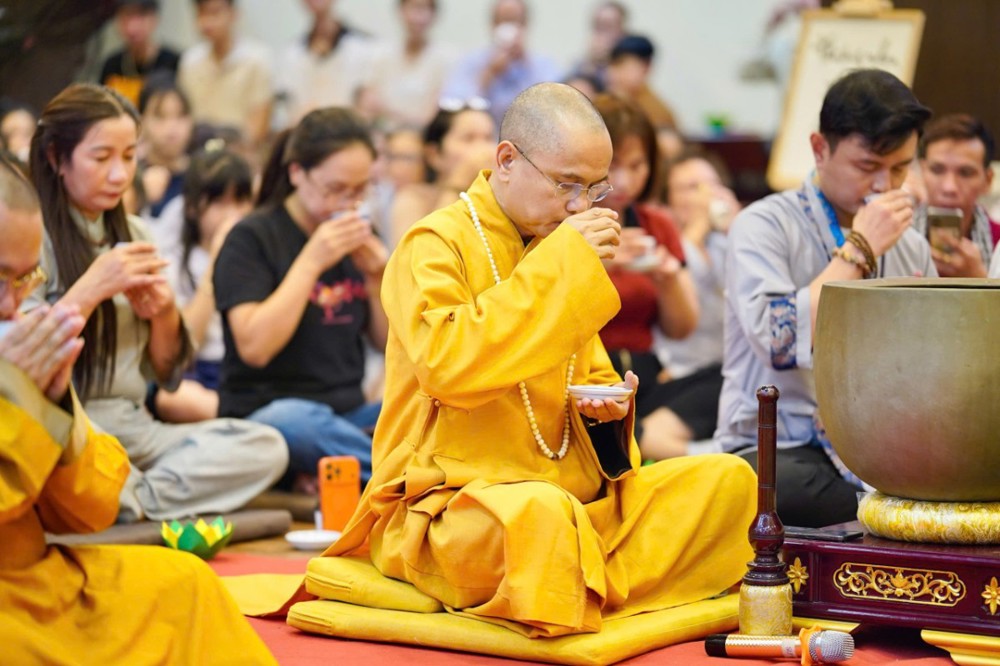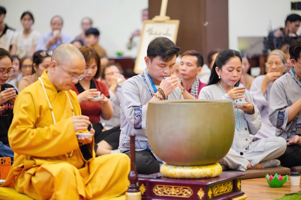 Trong không khí đầy lắng đọng ấy, đại chúng còn được tham dự phần thiền trà. Những giây phút ngồi yên bên chén trà ấm đã giúp mỗi người trở về với hơi thở của mình, lắng dịu tâm thức, cảm nhận rõ hơn sự mong manh của kiếp người và sự cần thiết của yêu thương trong cơn biến động.