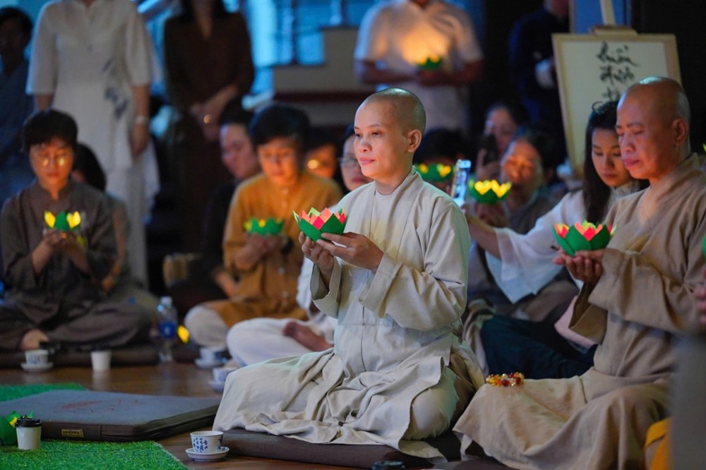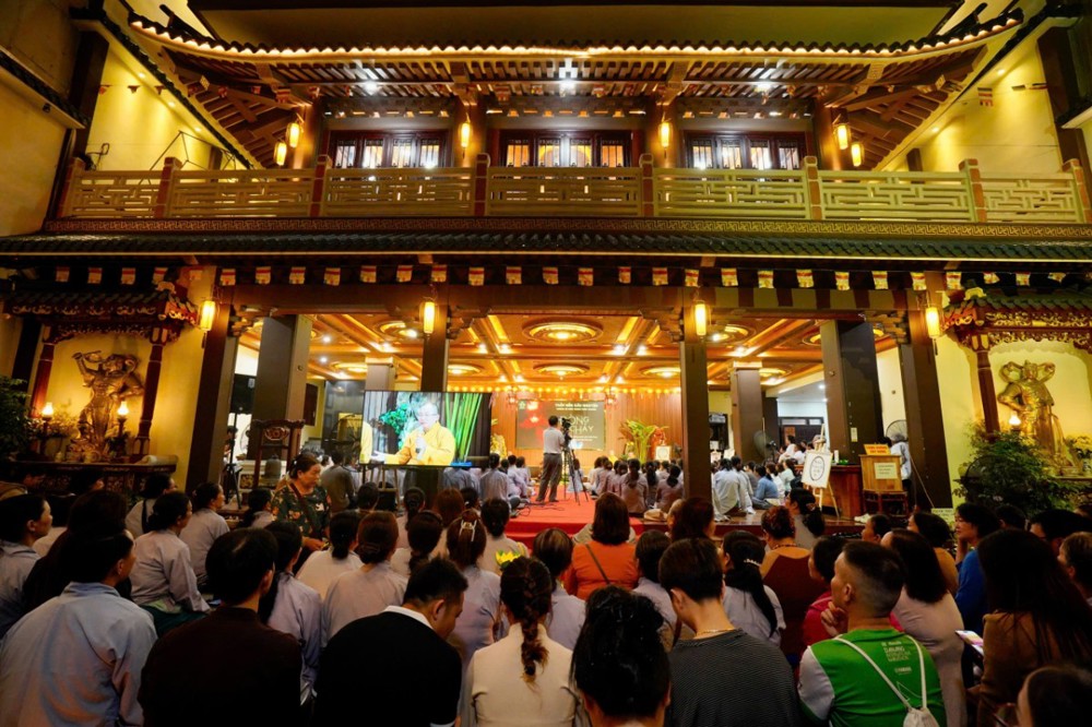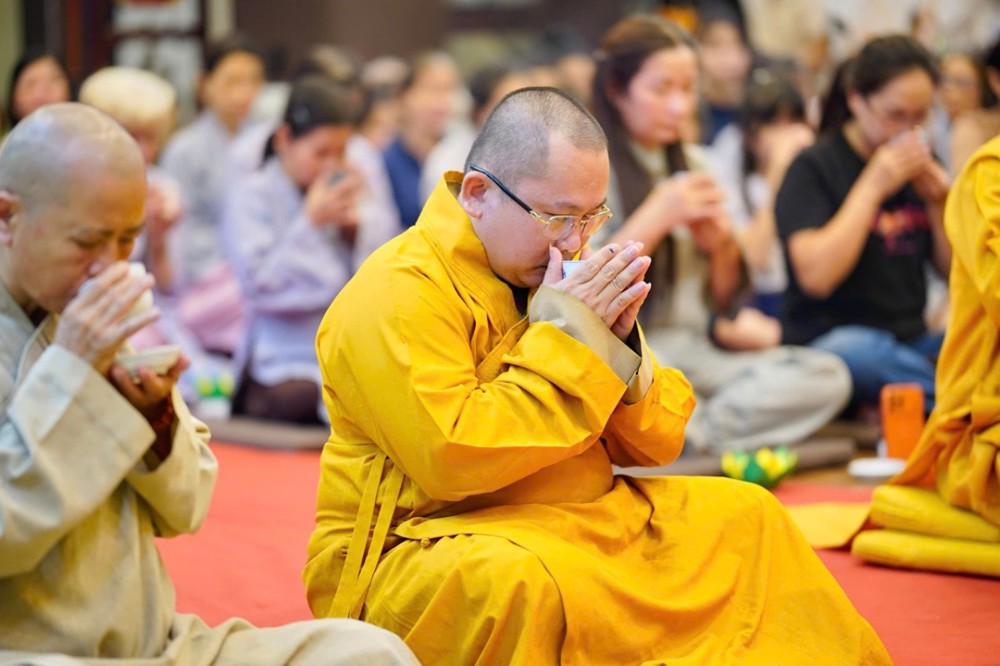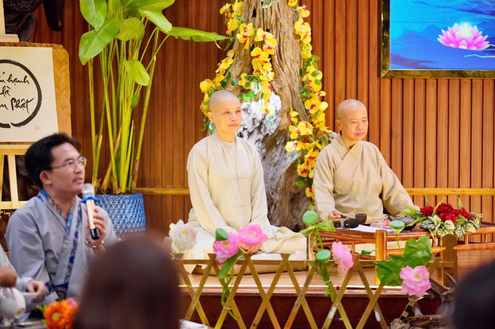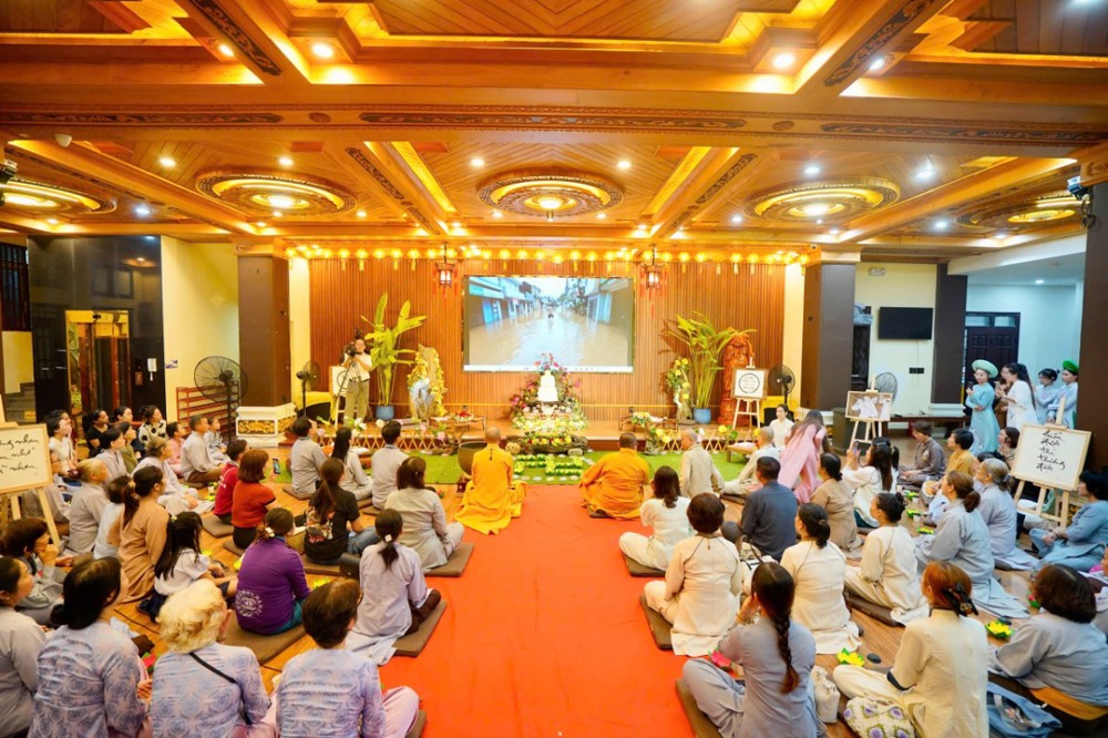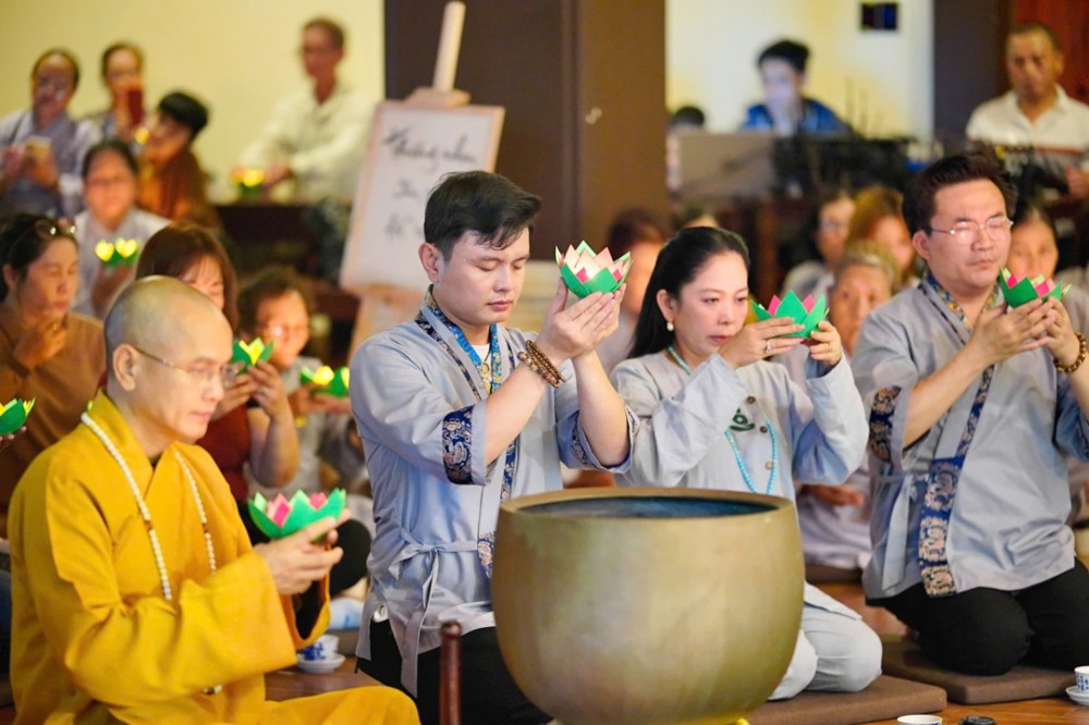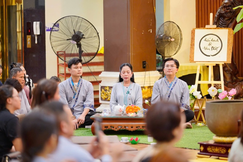 Trong không khí đầy lắng đọng ấy, đại chúng còn được tham dự phần thiền trà. Những giây phút ngồi yên bên chén trà ấm đã giúp mỗi người trở về với hơi thở của mình, lắng dịu tâm thức, cảm nhận rõ hơn sự mong manh của kiếp người và sự cần thiết của yêu thương trong cơn biến động.