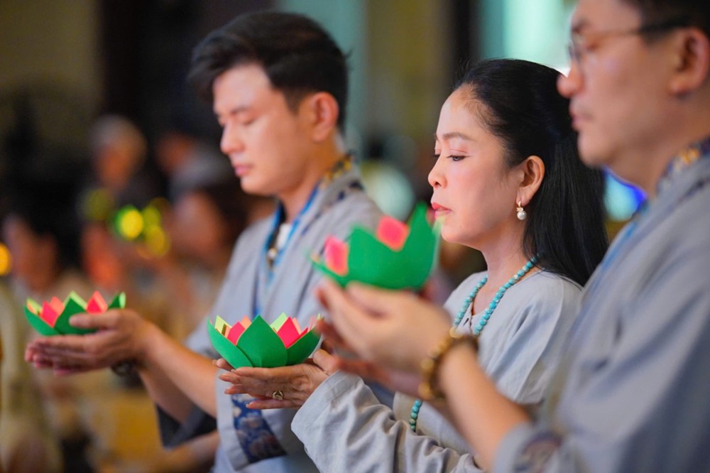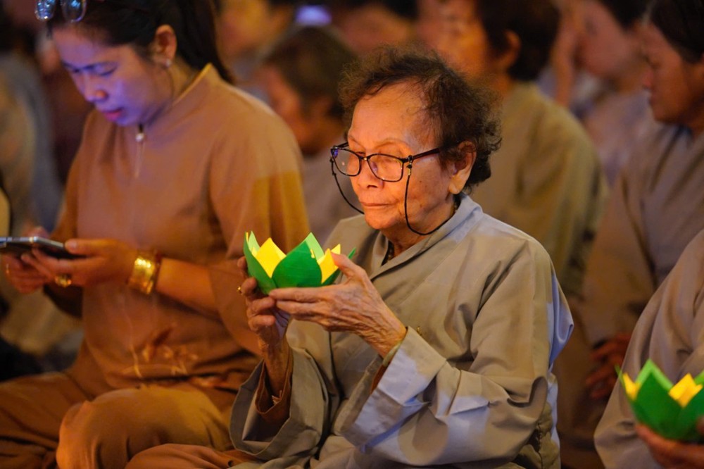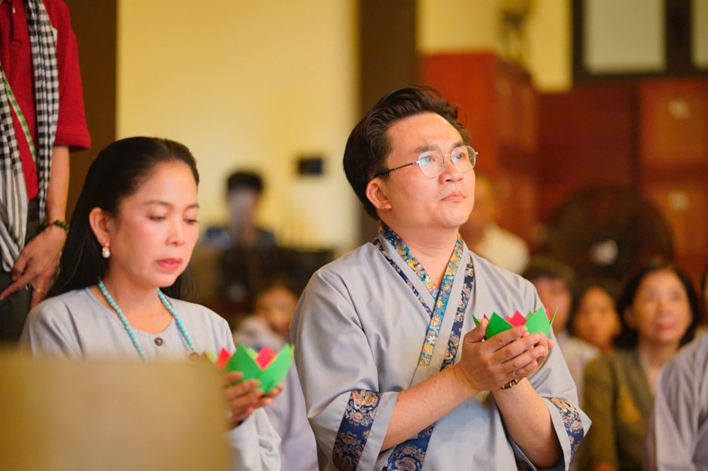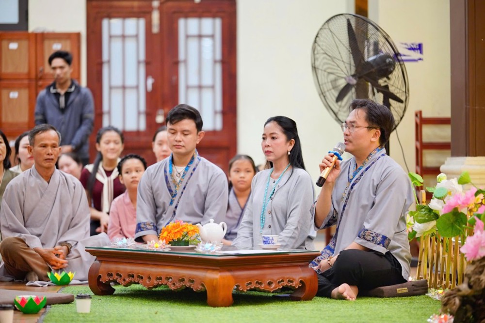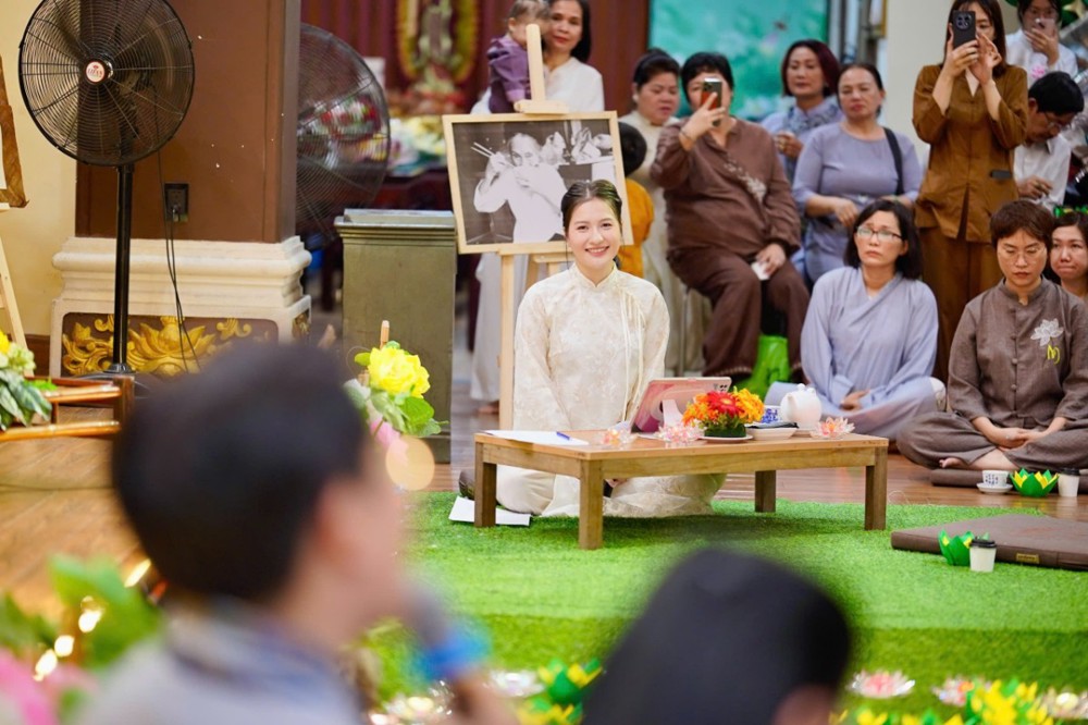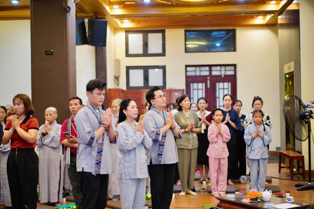 Trong không khí đầy lắng đọng ấy, đại chúng còn được tham dự phần thiền trà. Những giây phút ngồi yên bên chén trà ấm đã giúp mỗi người trở về với hơi thở của mình, lắng dịu tâm thức, cảm nhận rõ hơn sự mong manh của kiếp người và sự cần thiết của yêu thương trong cơn biến động.