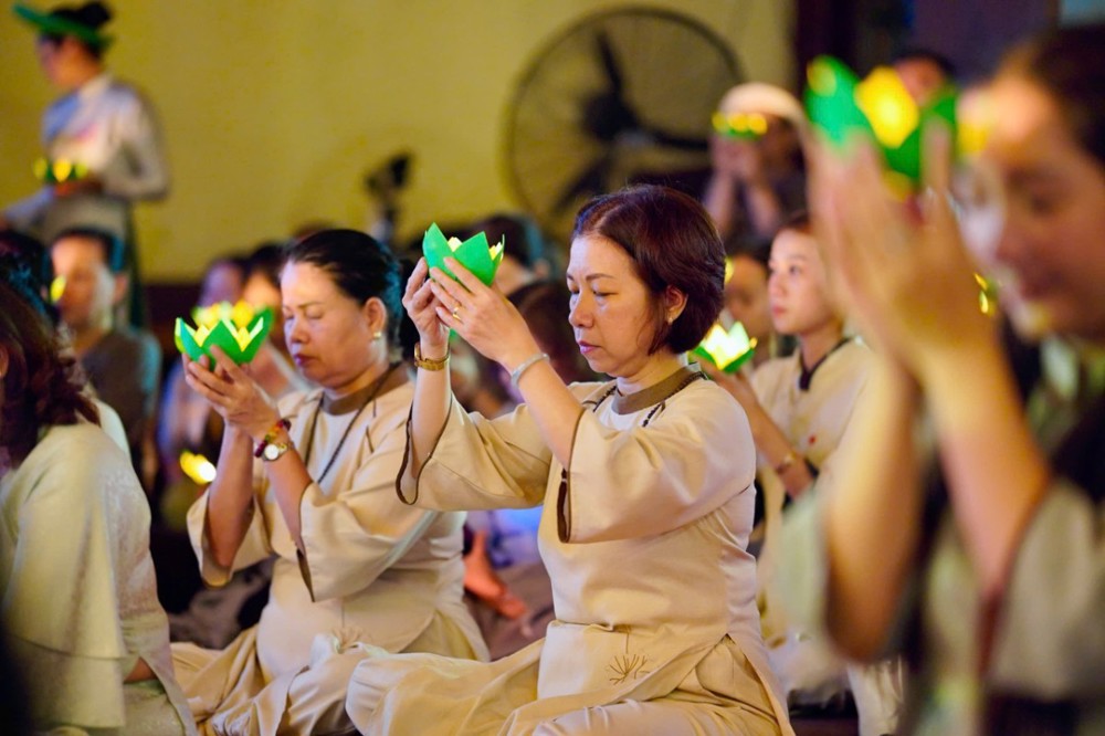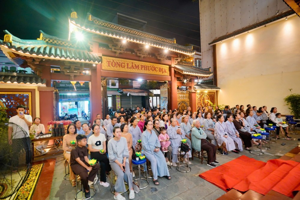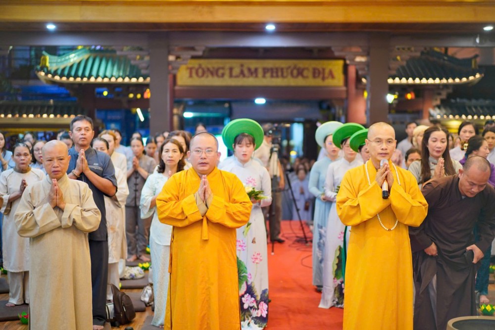 Đêm cầu nguyện được tổ chức trang trọng với sự quang lâm của chư Tôn đức: Thượng tọa Thích Đạo Lực – Trú trì chùa Tân Thành; Thượng tọa Thích Quảng Hà, Sư cô Thích Nữ Tâm Viên, Sư cô Thích nữ Thanh Hoàng; cùng sự hiện diện gần gũi của MC Đại Nghĩa, Ca sĩ Mỹ Hạnh, Ca sĩ Anh Duy và hơn 400 thiện hữu Phật tử.