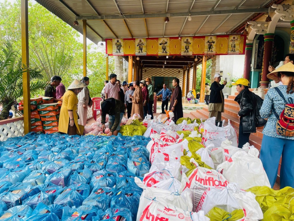 Tại địa phương, đoàn đã gửi đến bà con 200 phần quà cứu trợ, gồm các nhu yếu phẩm thiết yếu nhằm hỗ trợ kịp thời cho các hộ dân đang gặp khó khăn do ngập lụt. Mỗi phần quà tuy mộc mạc nhưng chứa đựng tấm lòng của chư Tôn đức và Phật tử gần xa cùng mong muốn sẻ chia phần nào những vất vả mà người dân đang gánh chịu.