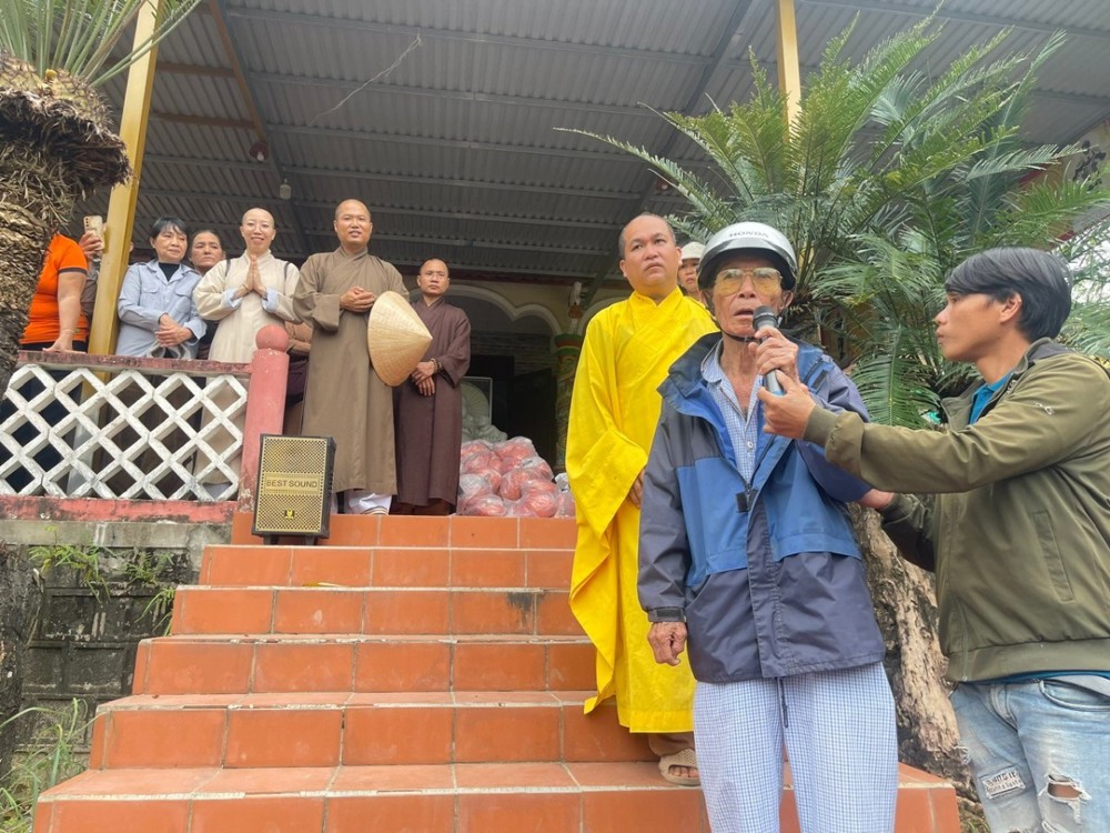 Đại diện bà con nhận quà đã phát biểu ghi nhận và trân trọng cảm ơn sự quan tâm của chư Tôn đức, quý mạnh thường quân và Phật tử các chùa đã kịp thời hỗ trợ, góp phần giúp bà con sớm ổn định cuộc sống sau thiên tai. Ban Tổ chức xin thành kính tri ân chư Tôn đức, quý mạnh thường quân và thiện tín Phật tử đã chung tay đóng góp tịnh tài, tịnh vật để chuyến cứu trợ được thành tựu viên mãn.