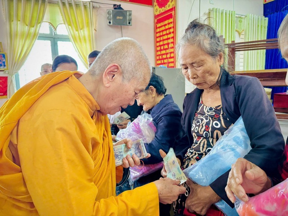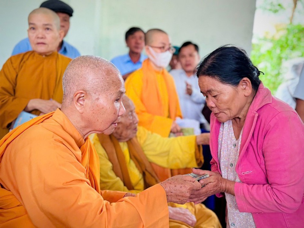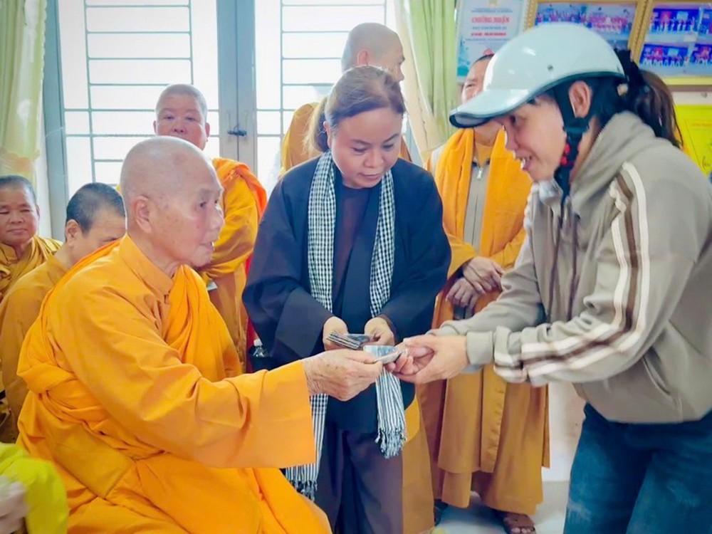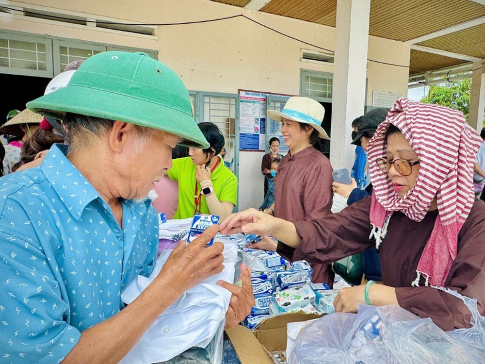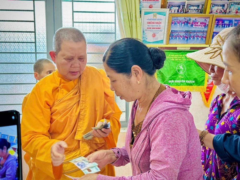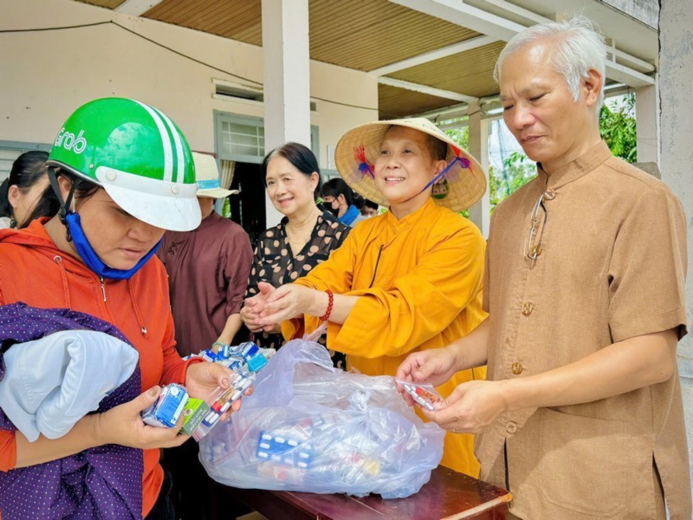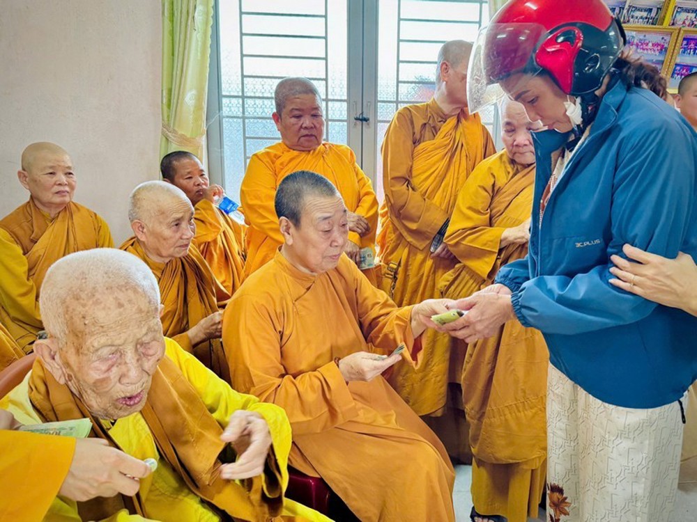 Đặc biệt, hình ảnh Sư bà Chiêu Liên 98 tuổi vẫn kiên trì vượt đường dài, dưới mưa dầm gió lạnh, để cùng đoàn tận tay trao quà đến bà con vùng lũ — hình ảnh khiến ai chứng kiến cũng xúc động, tràn đầy niềm kính quý.