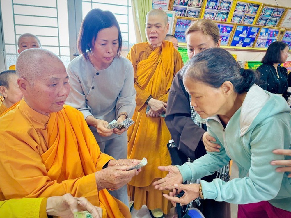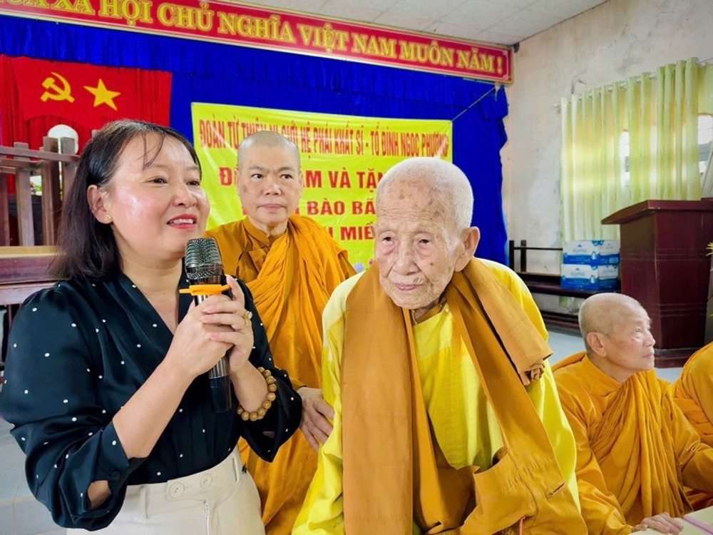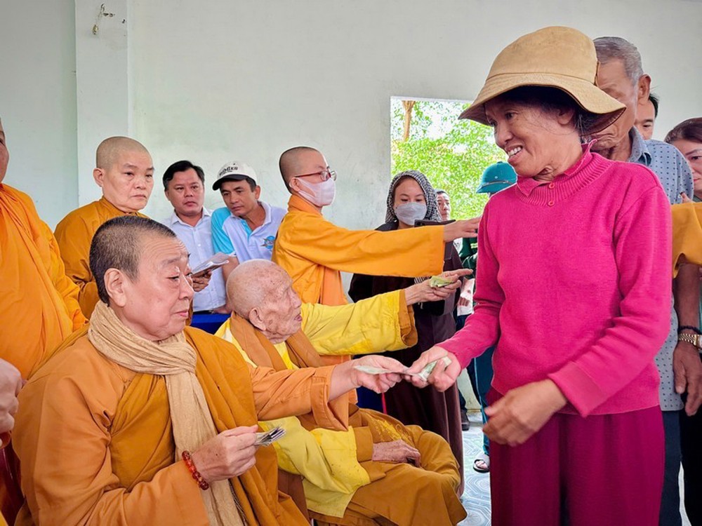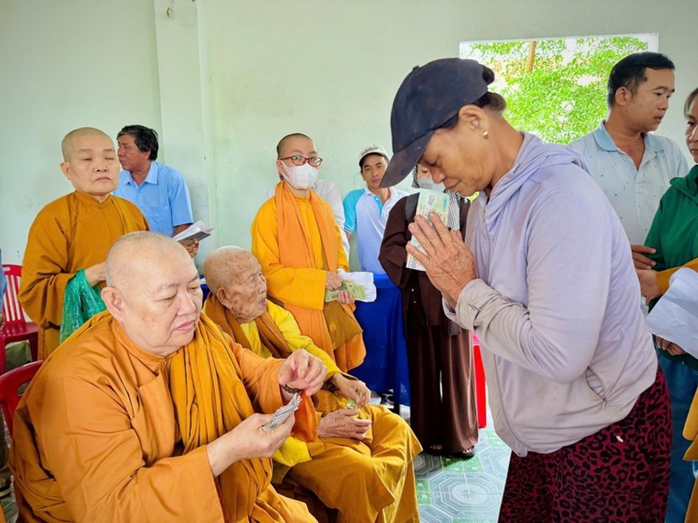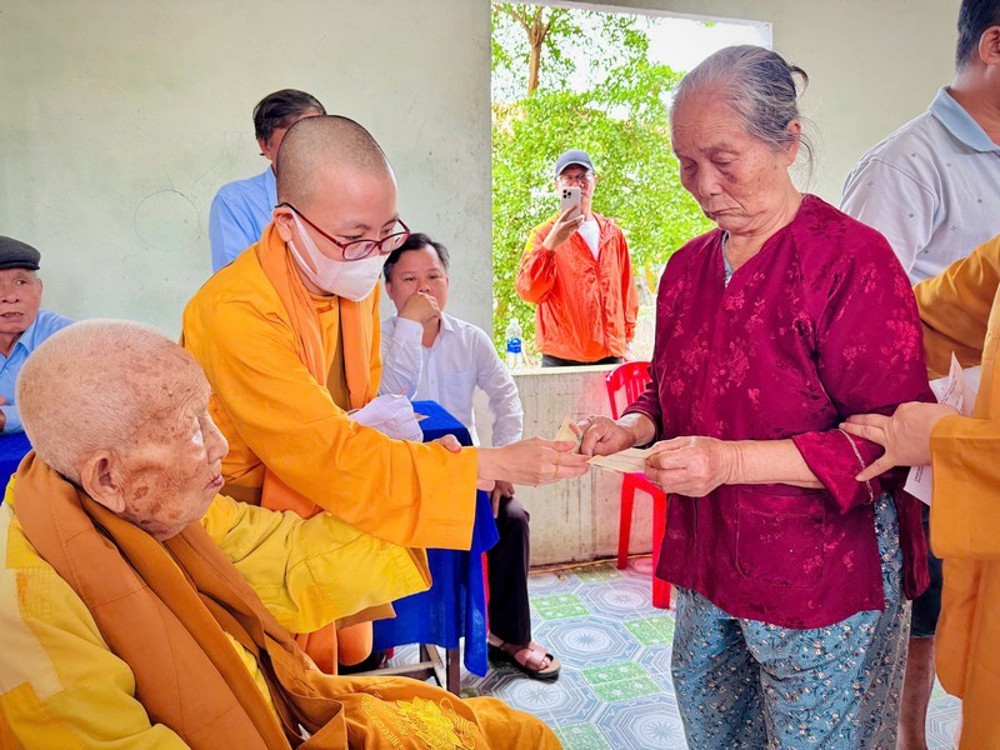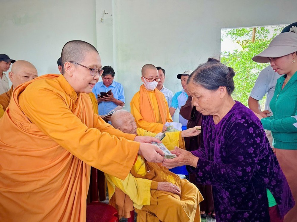 Đặc biệt, hình ảnh Sư bà Chiêu Liên 98 tuổi vẫn kiên trì vượt đường dài, dưới mưa dầm gió lạnh, để cùng đoàn tận tay trao quà đến bà con vùng lũ — hình ảnh khiến ai chứng kiến cũng xúc động, tràn đầy niềm kính quý.
