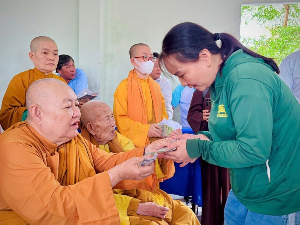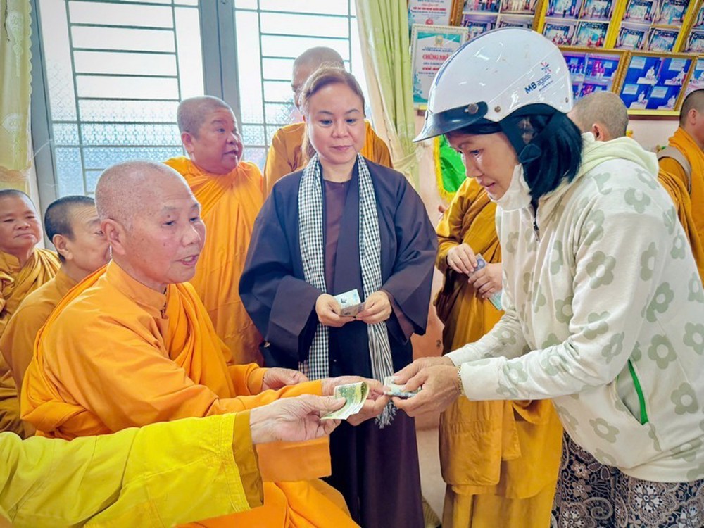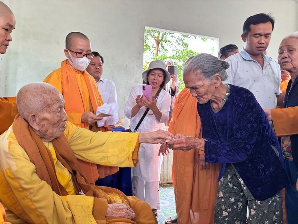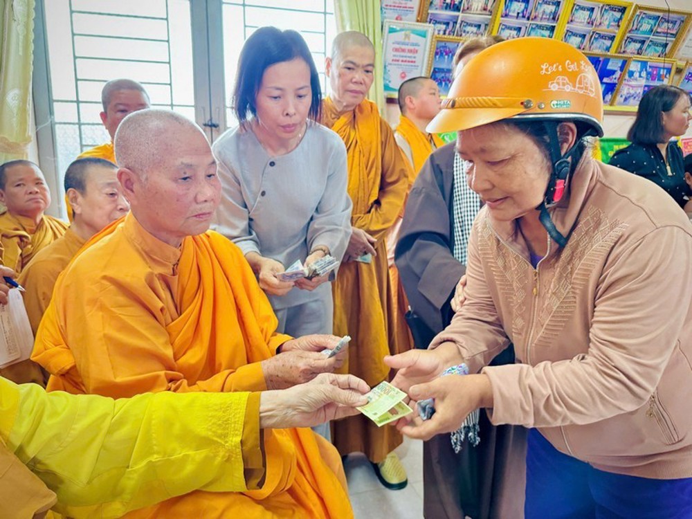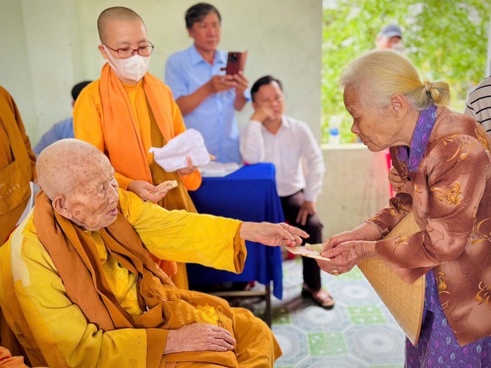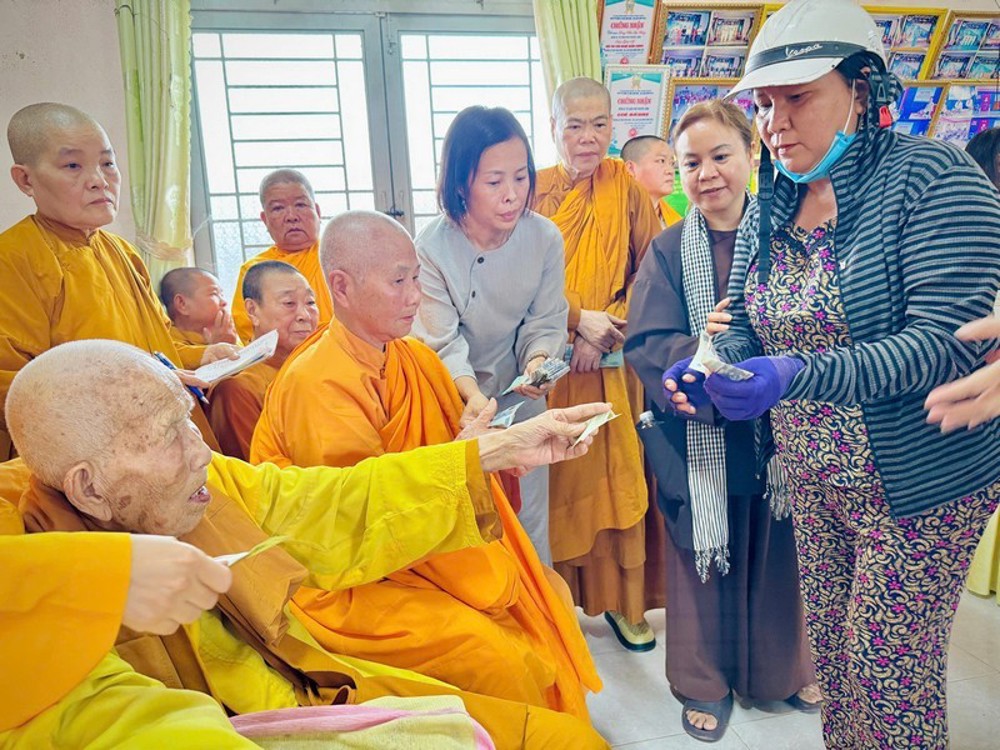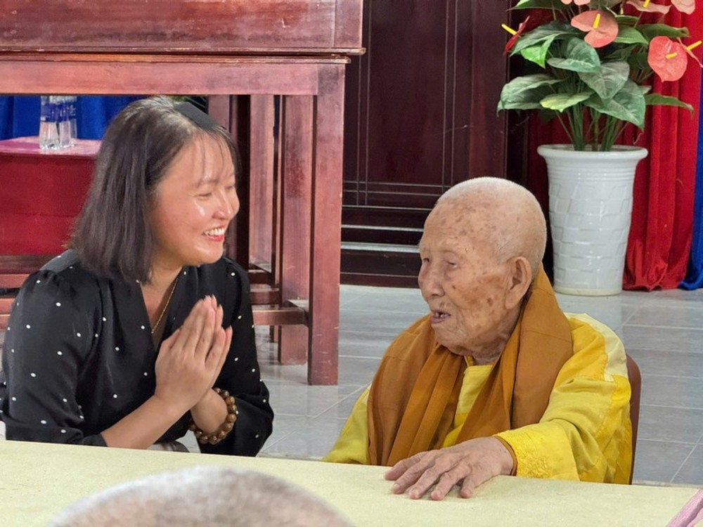 Đặc biệt, hình ảnh Sư bà Chiêu Liên 98 tuổi vẫn kiên trì vượt đường dài, dưới mưa dầm gió lạnh, để cùng đoàn tận tay trao quà đến bà con vùng lũ — hình ảnh khiến ai chứng kiến cũng xúc động, tràn đầy niềm kính quý.