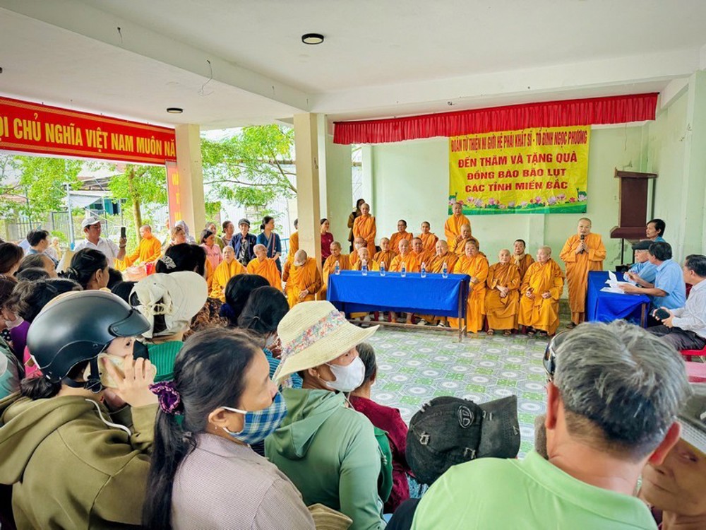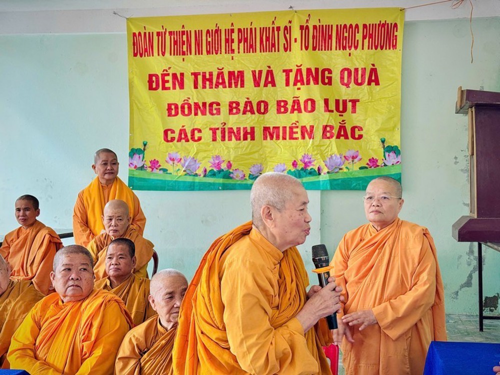 Phát biểu tại các nơi trao quà, Ni trưởng Tuấn Liên gửi lời thăm hỏi sức khỏe và chia sẻ: Nhìn những gương mặt khắc khổ của đồng bào, chúng con không khỏi xúc động. Mong rằng những phần quà nhỏ bé này sẽ phần nào sưởi ấm những mái nhà vừa trải qua mưa lũ, tiếp thêm nghị lực để mọi người vượt qua khó khăn.