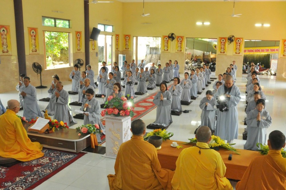 Quang lâm chứng minh lễ khai mạc khóa tu, sự hiện diện của Thượng tọa Thích Nhuận Hòa - Ủy viên thường trực Ban trị sự GHPGVN Tp. Đà Nẵng; Trưởng phân ban cư sĩ phật tử Thành phố; Thượng tọa Thích Bảo Tuyền - Ủy viên Ban trị sự, UV Ban Nghi Lễ GHPGVN Tp.Đà Nẵng; Đại đức Thích Thông Khiêm - Ủy viên Ban trị sự, Phó Chánh Văn phòng Ban trị sự GHPGVN Tp. Đà Nẵng; Đại đức Thích Bảo Hưng - Ủy viên Ban trị sự, UV Ban Hoằng Pháp GHPGVN Tp. Đà Nẵng; Thượng tọa Thích Thông Ân – Phó Phân ban cư sĩ phật tử Thành phố Đà Nẵng, trụ trì chùa Thái Bình; Thượng Tọa Thích Bảo Ân - Ủy viên Ban trị sự - Phó Trưởng ban thường trực phân ban cư sĩ phật tử Thành phố Đà Nẵng, Trụ trì Chùa Phước Ấm (xã Thăng An,Tp.Đà Nẵng) Trưởng Ban tổ chức khóa tu; Đại đức Thích Nhuận Thịnh – Phó thư ký Phân ban cư sĩ Phật tử, Tri sự chùa Hương Sơn và hơn 70 hành giả tham dự khóa tu.