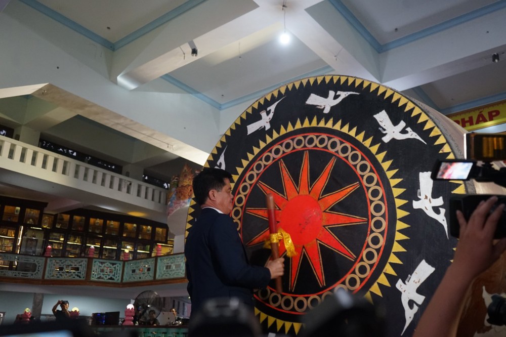 Tại buổi lễ, ông Nguyễn Hòa đã đánh trống chính thức khai mạc lễ hội.