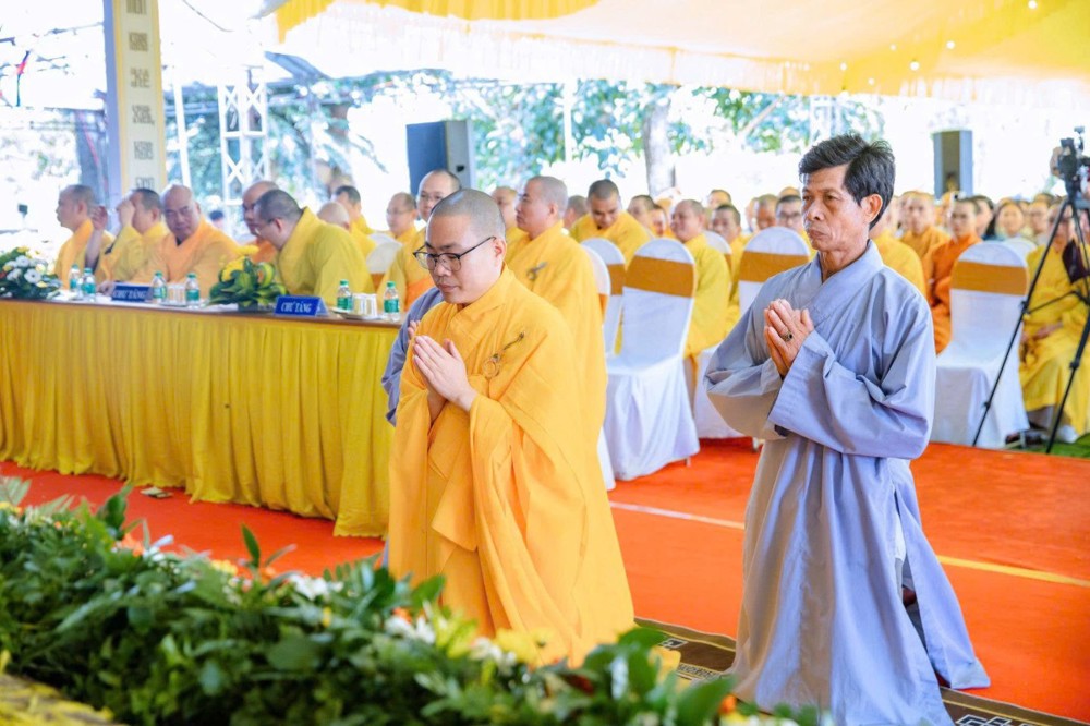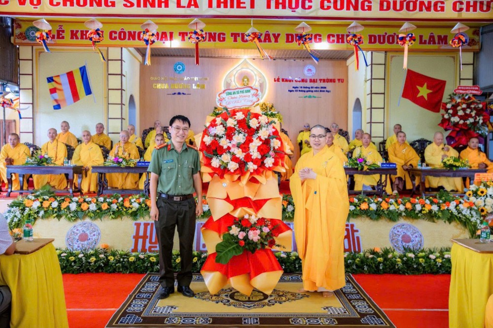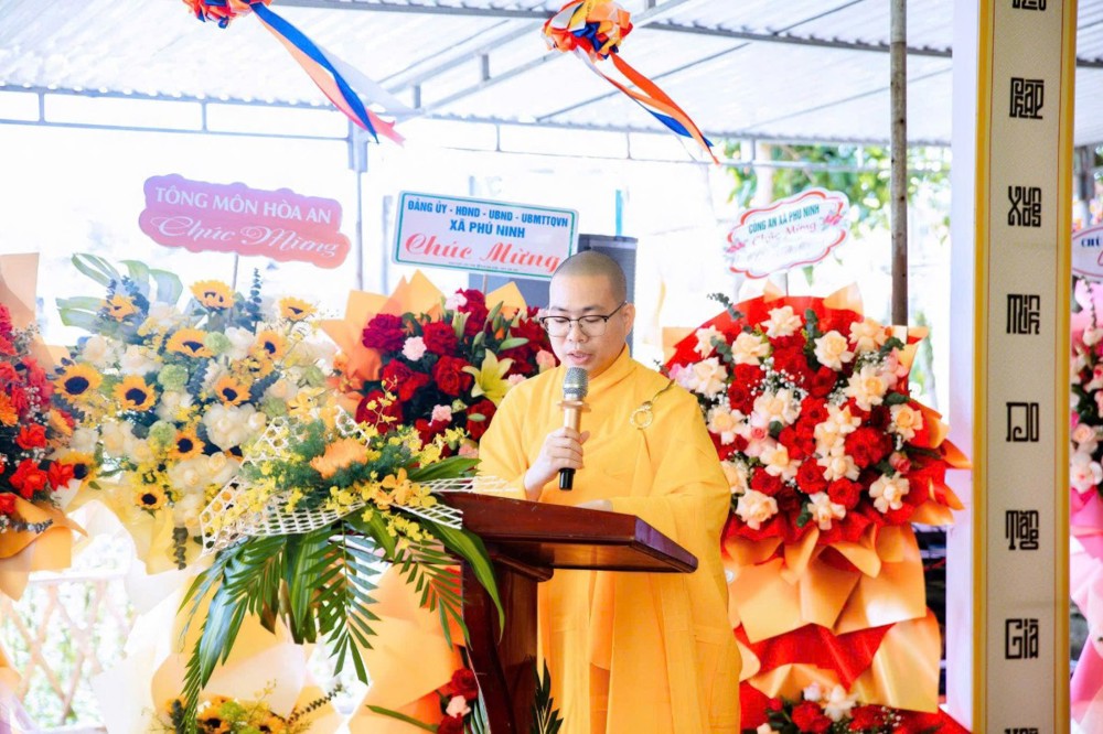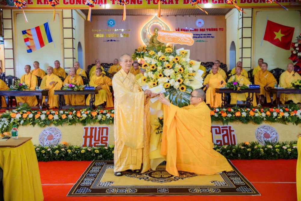 Ban đạo từ tại buổi lễ, Hòa thượng Thích Từ Nghiêm thay mặt Thường trực Ban Trị sự gửi lời chúc năm mới an lành đến toàn thể đại chúng. Hòa thượng đồng thời tán thán tâm nguyện và công hạnh của Đại đức trụ trì trong việc phát tâm trùng tu, kiến tạo lại chùa Dương Lâm.