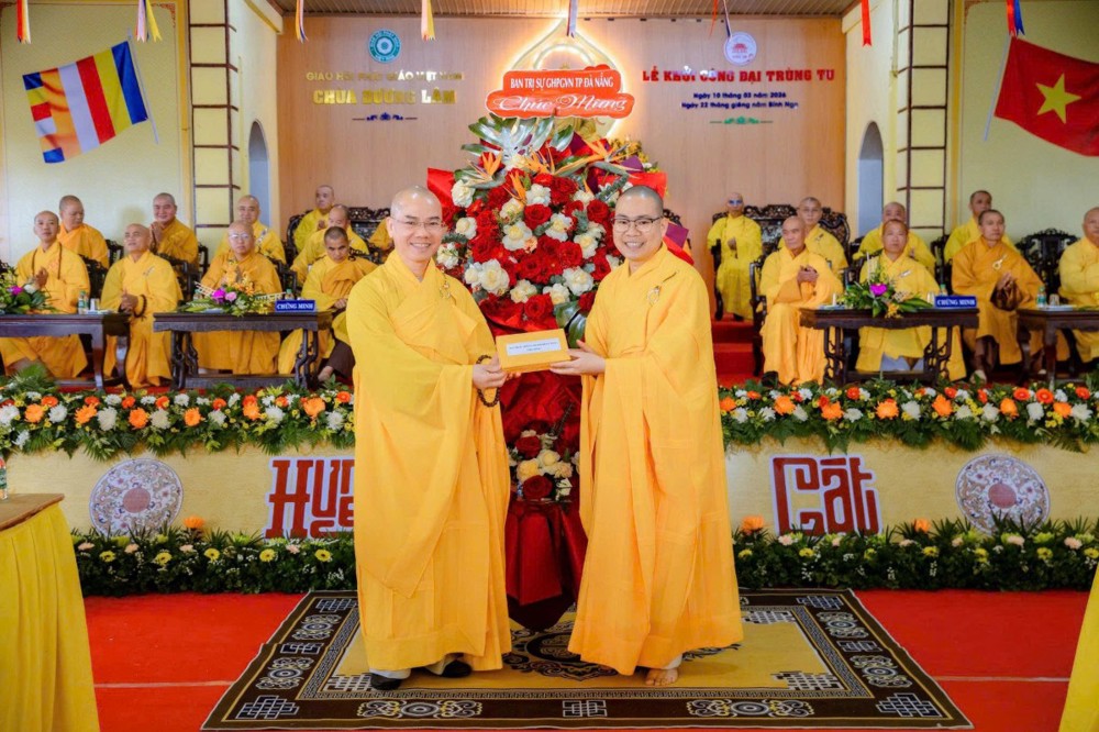 Quang lâm chứng minh có Trưởng lão Hòa thượng Thích Thiện Thành – UVTT HĐCM, Chứng minh BTS GHPGVN Tp Đà Nẵng; Hòa thượng Thích Từ Nghiêm - UV HĐTS, Trưởng Ban Trị sự GHPGVN Tp Đà Nẵng; Thượng tọa Thích Thông Đạo - UV HĐTS, Phó Trưởng ban Thường Trực Ban Trị sự GHPGVN Tp Đà Nẵng; Hòa thượng Thích Đồng Nguyện - Phó Trưởng Ban Trị sự, Trưởng Ban Hoằng Pháp GHPGVN Tp Đà Nẵng; Hòa thượng Thích Hạnh Nhẫn - Phó trưởng Ban Trị sự GHPGVN Tp Đà Nẵng; Thượng tọa Thích Quảng Tiến - Uỷ viên HĐTS, Phó Chánh Văn phòng 2 Trung ương, Phó Trưởng Ban Trị sự GHPGVN Tp Đà Nẵng; Thượng tọa Thích Viên Trừng - UV HĐTS, Phó Trưởng Ban Trị sự GHPGVN Tp Đà Nẵng; Thượng tọa Thích Hạnh Tấn - Phó Trưởng ban Trị sự GHPGVN Tp Đà Nẵng; Thượng tọa Thích Pháp Châu - Phó trưởng Ban Trị sự, Trưởng Ban Hướng dẫn Phật tử GHPGVN Tp Đà Nẵng cùng Chư tôn đức Chứng minh Ban Trị sự, Chư Tôn đức Thường trực Ban Trị sự GHPGVN Tp Đà Nẵng cùng chư tôn đức Tăng, Ni trụ trì các chùa, tự viện trong và ngoài thành phố.