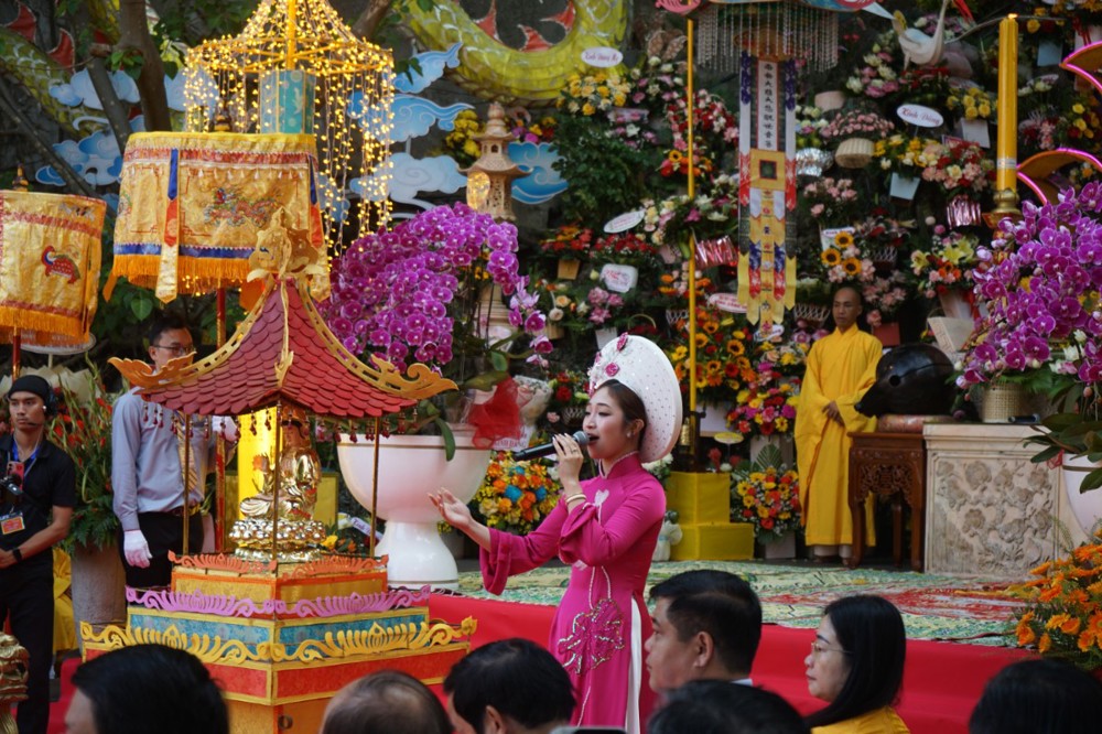 Phần nghi lễ đản sanh Bồ Tát Quán Thế Âm được cử hành trong không khí trang nghiêm và thanh tịnh của hội chúng.