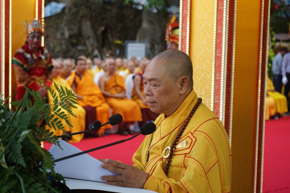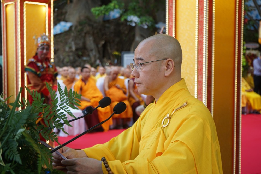 Thượng tọa Thích Thông Đạo thay mặt Ban Trị sự Thành phố và Ban tổ chức phát biểu cảm tạ chư Tôn đức, lãnh đạo chính quyền, các cơ quan ban ngành, các đạo tràng Phật tử và thiện tín thập phương đã hỗ trợ, đóng góp để lễ hội Quán Thế Âm Ngũ Hành Sơn năm 2026 được viên mãn.