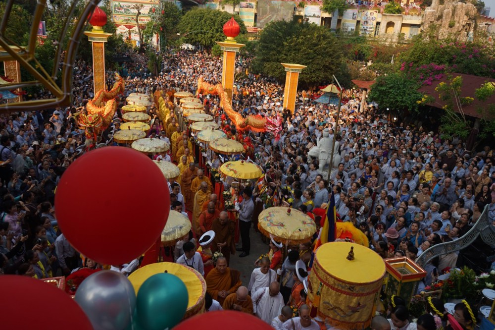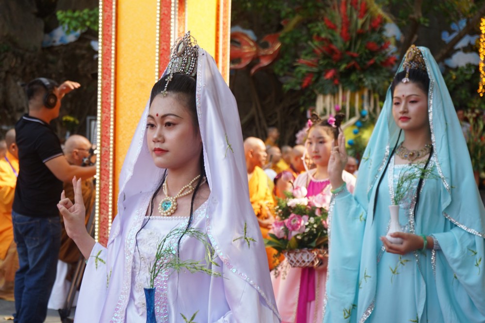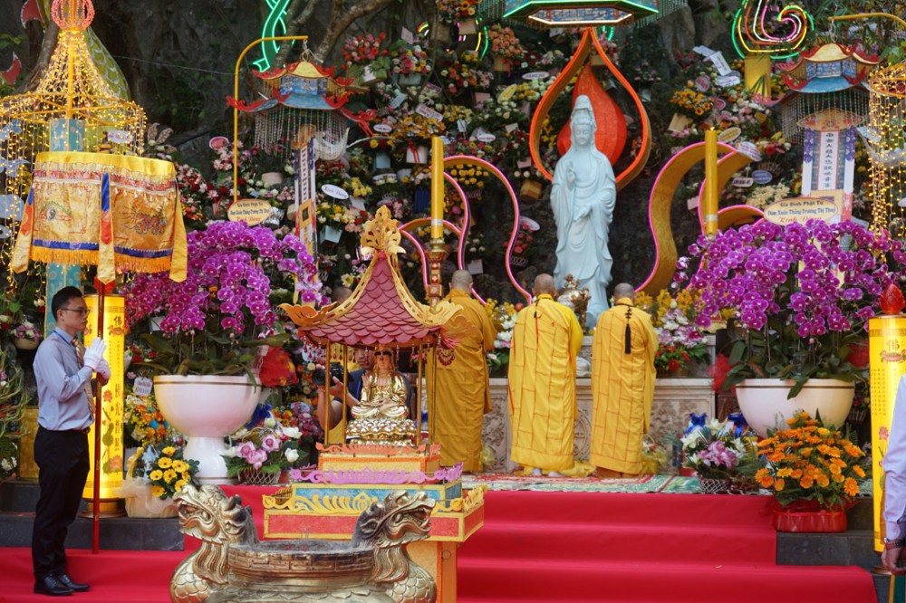 Nghi thức hóa trang tôn tượng Đức Quán Thế Âm qua lễ đài, hướng về đông đảo thập phương thiện tín tham dự lễ hội kết thúc buổi lễ chính thức kỷ niệm ngày Đản sanh của Bồ Tát Quán Thế Âm trong niềm hỷ lạc.