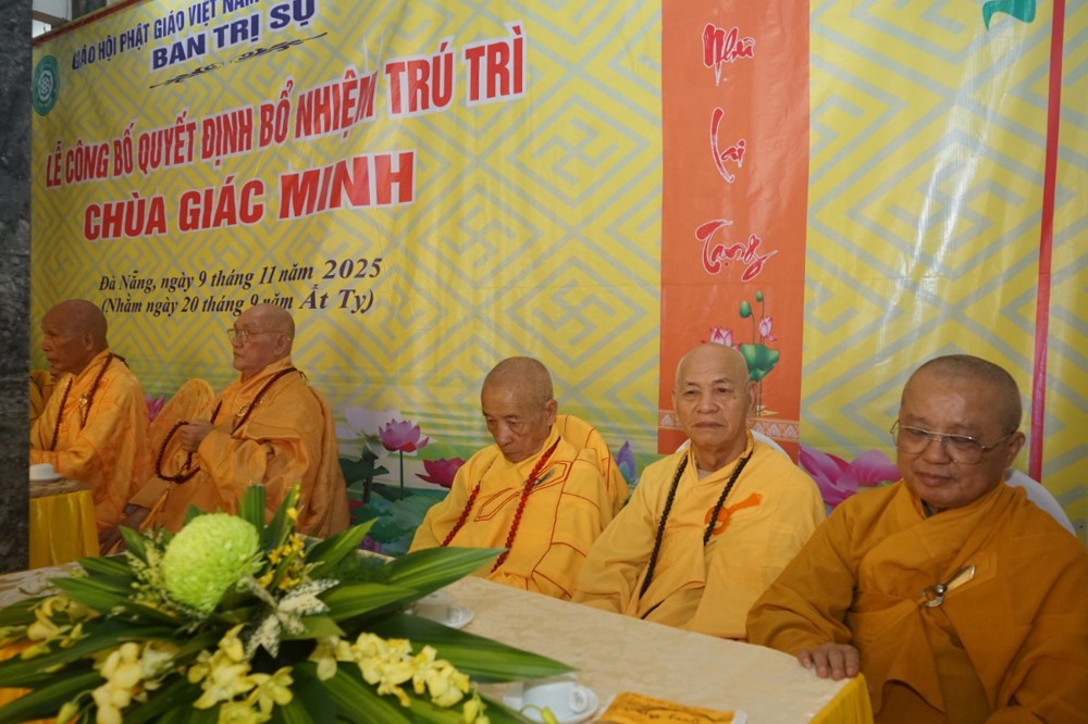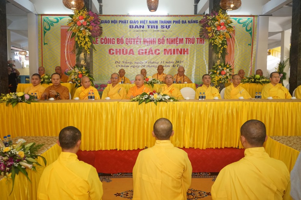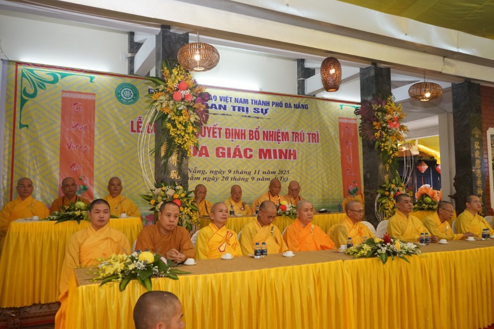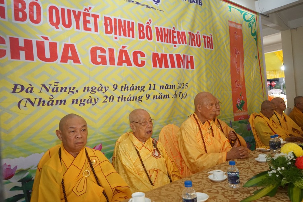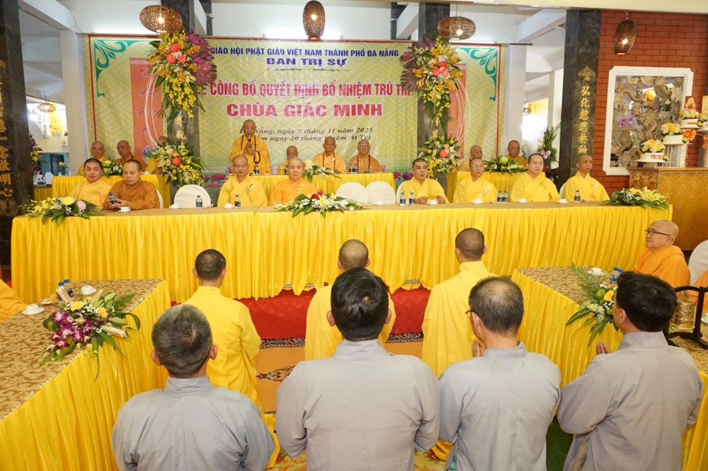 Thay mặt Ban thư ký Ban Trị sự GHPGVN Tp Đà Nẵng, Thượng tọa Thích Thanh Bảo – Phó thư ký, Chánh văn phòng ban Trị sự đã công bố quyết định bổ nhiệm Đại đức Thích Đồng Tường giữ chức vụ trú trì chùa Giác Minh. Thay mặt Thường trực Ban Trị sự, Hòa thượng Thích Phước Minh đã trao quyết định bổ nhiệm trú trì, Thượng tọa Thích Thông Đạo đã trao tặng lẵng hoa chúc mừng đến tân trú trì chùa Giác Minh.