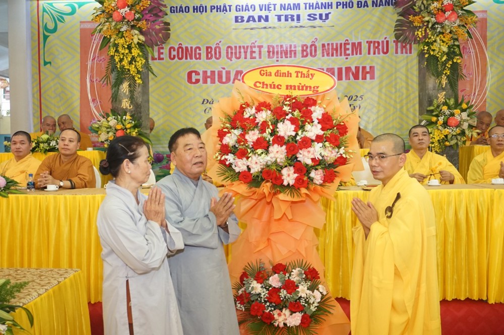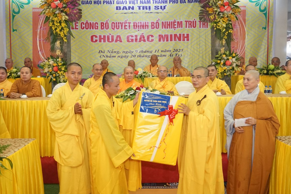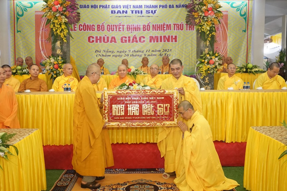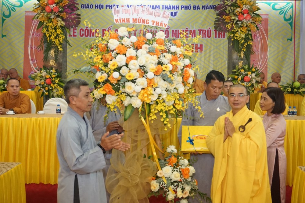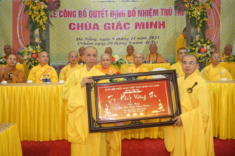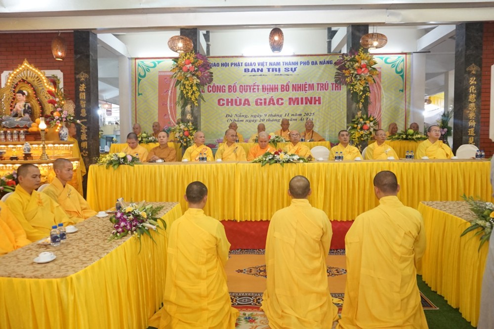 Thay mặt Ban thư ký Ban Trị sự GHPGVN Tp Đà Nẵng, Thượng tọa Thích Thanh Bảo – Phó thư ký, Chánh văn phòng ban Trị sự đã công bố quyết định bổ nhiệm Đại đức Thích Đồng Tường giữ chức vụ trú trì chùa Giác Minh. Thay mặt Thường trực Ban Trị sự, Hòa thượng Thích Phước Minh đã trao quyết định bổ nhiệm trú trì, Thượng tọa Thích Thông Đạo đã trao tặng lẵng hoa chúc mừng đến tân trú trì chùa Giác Minh.