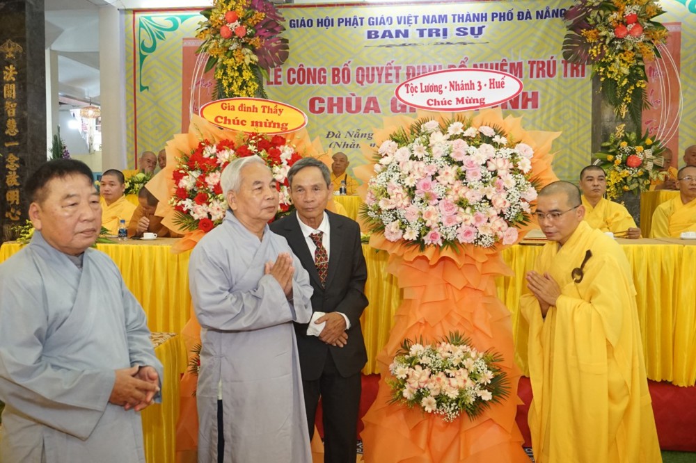 Quang lâm chứng minh và tham dự buổi lễ có Trưởng lão Hòa thượng Thích Như Thọ, Trưởng lão Hòa thượng Thích Huệ Thường, Trưởng lão Hòa thượng Thích Trí Viên – Đồng thành viên Hội đồng chứng minh GHPGVN, Chứng minh Ban Trị sự GHPGVN Tp Đà Nẵng; Hòa thượng Thích Từ Nghiêm – Ủy viên Hội đồng Trị sự GHPGVN, Trưởng Ban Trị sự GHPGVN Tp Đà Nẵng; Hòa thượng Thích Phước Minh - Ủy viên Hội đồng Trị sự GHPGVN, Phó trưởng ban Thường trực Ban Trị sự GHPGVN Tp Đà Nẵng; Thượng tọa Thích Thông Đạo - Ủy viên Hội đồng Trị sự GHPGVN, Phó trưởng ban Thường trực Ban Trị sự GHPGVN Tp Đà Nẵng cùng Chư Tôn đức giáo phẩm chứng minh Ban Trị sự, Chư Tôn đức Thường trực Ban Trị sự thành phố; Chư Tôn đức Tăng Ni trong và ngoài thành phố Đà Nẵng.