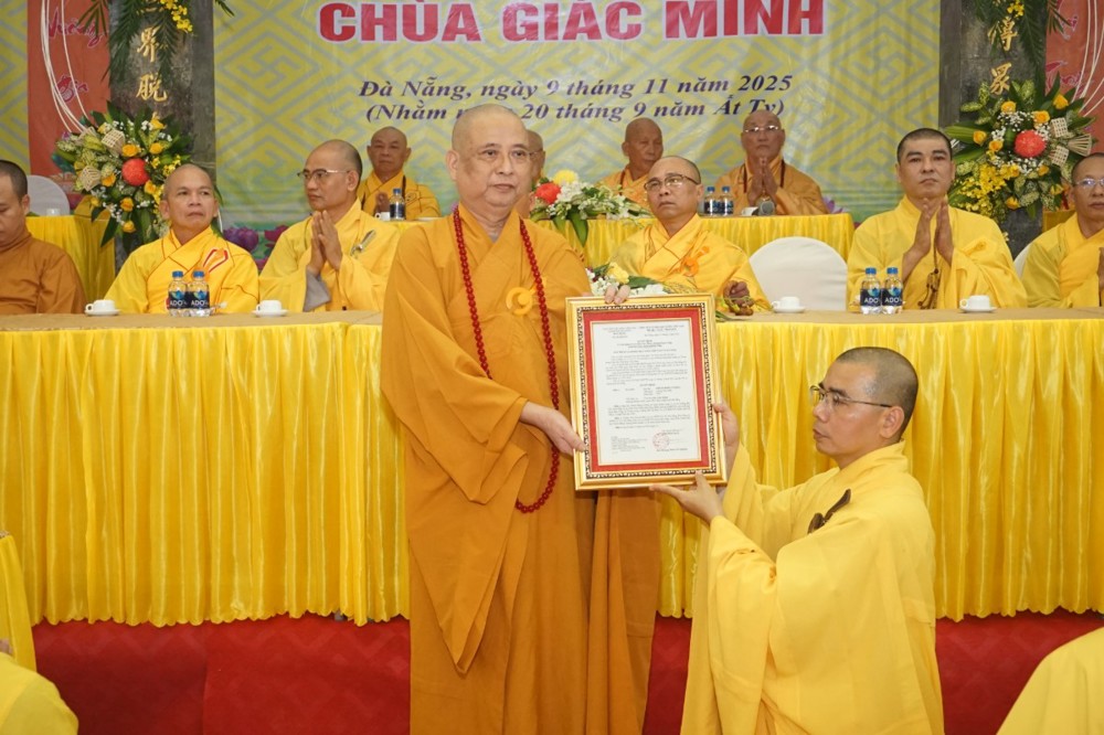 PSO – Sáng ngày 09 tháng 11 năm 2025 (nhằm ngày 20 tháng 9 năm Ất Tỵ), tại chùa Giác Minh – 356/42 Hoàng Diệu, phường Hải Châu, Tp Đà Nẵng đã trang nghiêm diễn ra lễ công bố quyết định bổ nhiệm trú trì chùa Giác Minh.