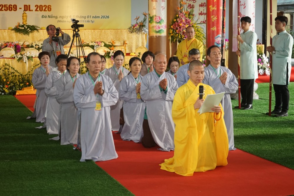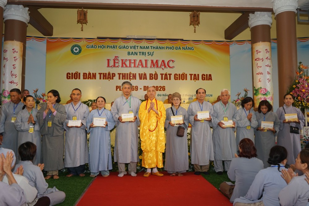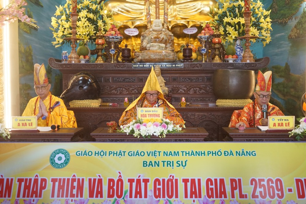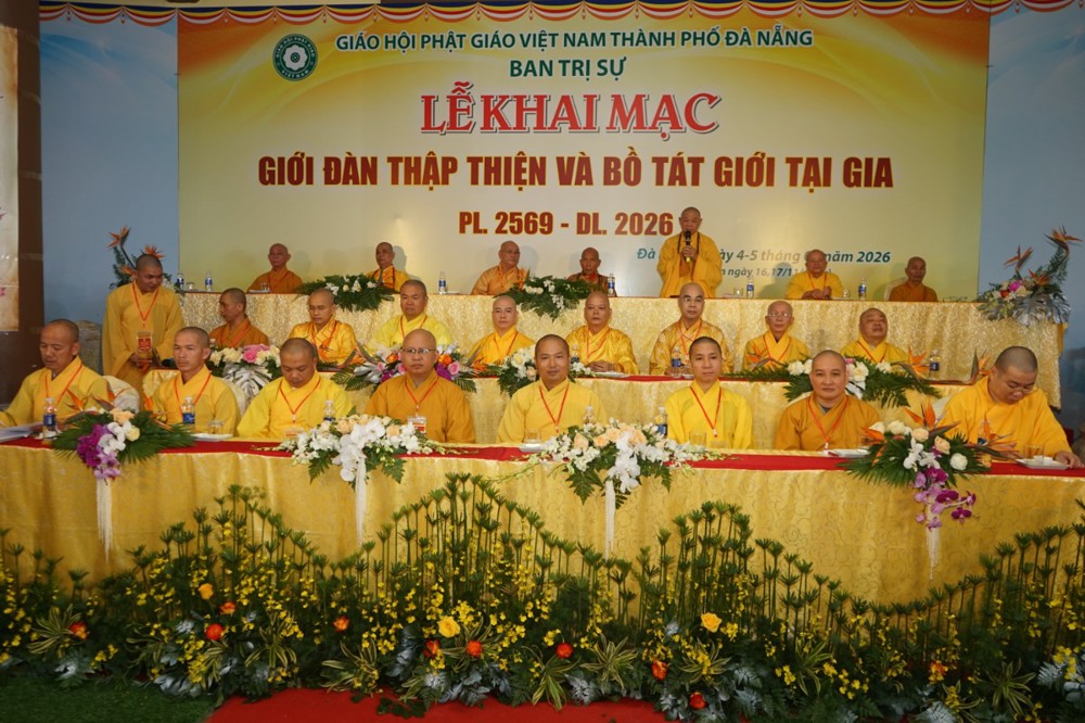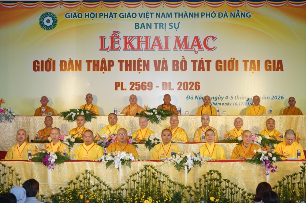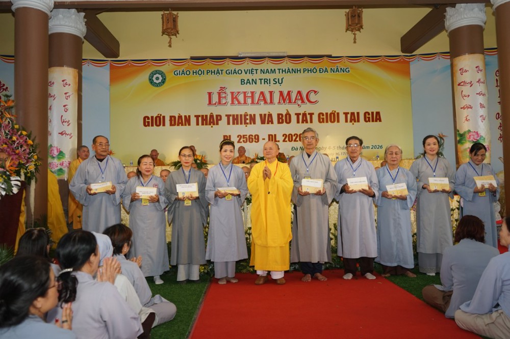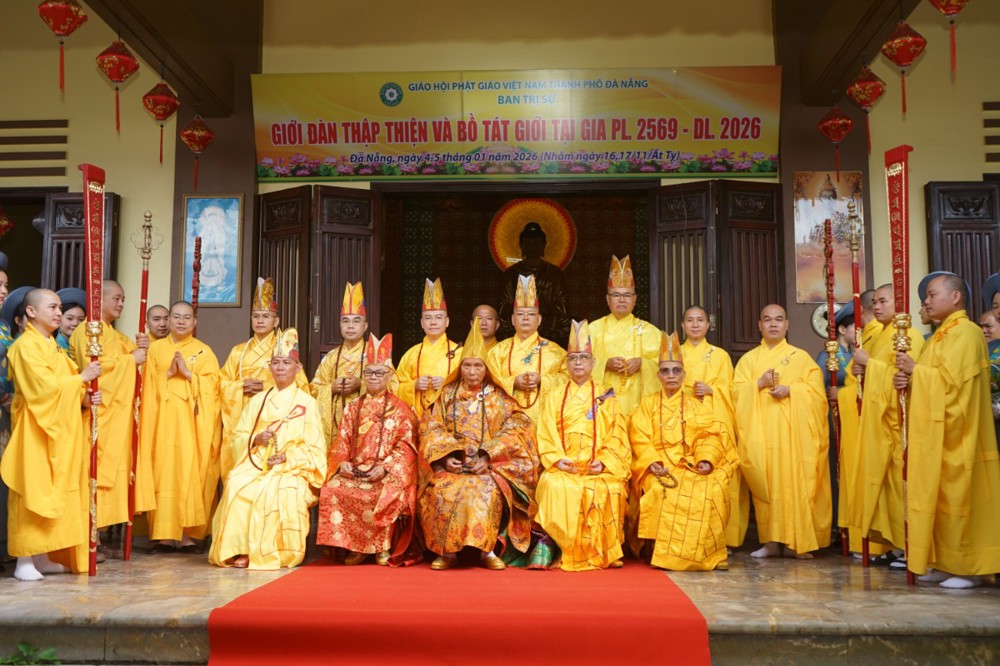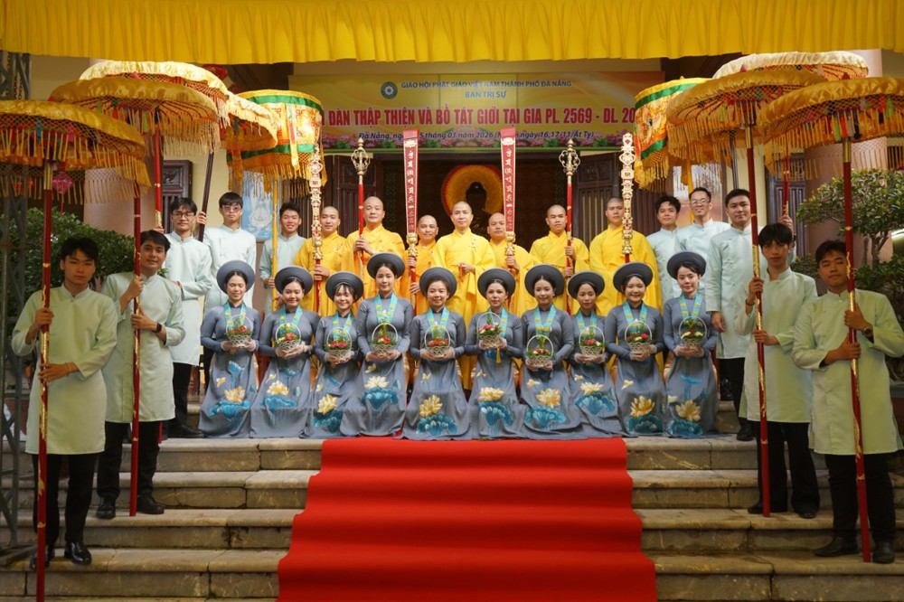 Sáng ngày 05/01/2026 (nhằm ngày 17/11/Ất Tỵ), vào lúc 7 giờ tại giới trường chùa Linh ứng Bãi Bụt (phường Sơn Trà, Tp Đà Nẵng), toàn thể Giới tử tại gia đã vân tập trang nghiêm cung thỉnh chư Tôn đức Hội đồng Thập sư cử hành lễ tấn đàn thọ giới Thập thiện và Bồ tát tại gia.