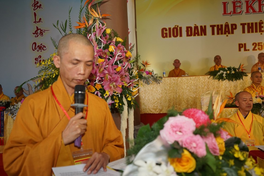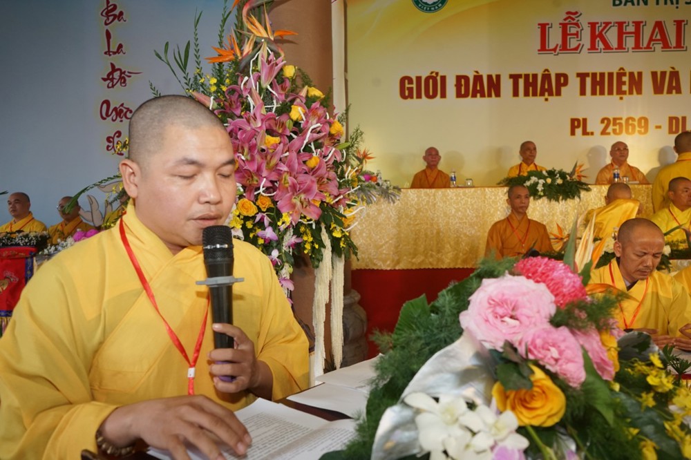 Ban tổ chức đã thành tâm cung thỉnh Trưởng lão Hòa thượng Thích Huệ Thường đương vi Đàn đầu Hòa thượng; Hòa thượng Thích Từ Nghiêm đương vi Yết ma A xà lê; Hòa thượng Thích Phước Minh đương vi Giáo thọ A xà lê; Hòa thượng Thích Hạnh Nhẫn, Hòa thượng Thích Huệ Vinh, Thượng tọa Thích Hạnh Tấn, Thượng tọa Thích Thông Đạo, Thượng tọa Thích Pháp Châu, Thượng tọa Thích Chúc Tín, Thượng tọa Thích Đạo Lực đương vi Tôn chứng sư.