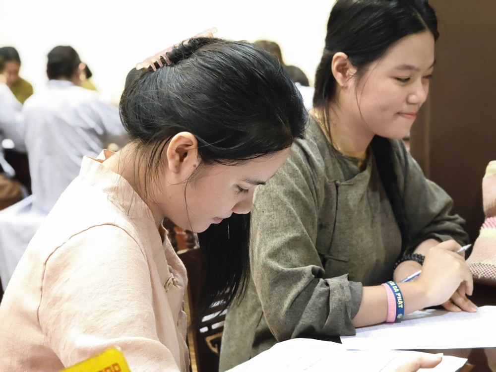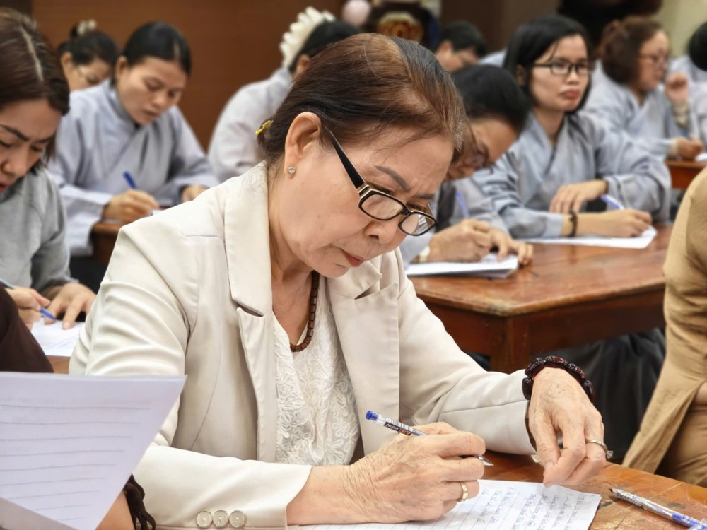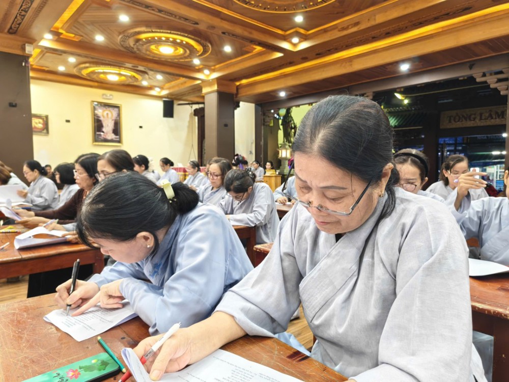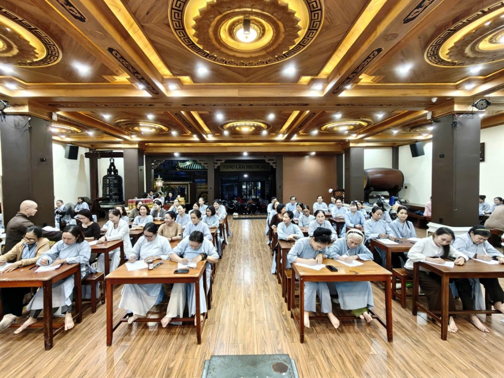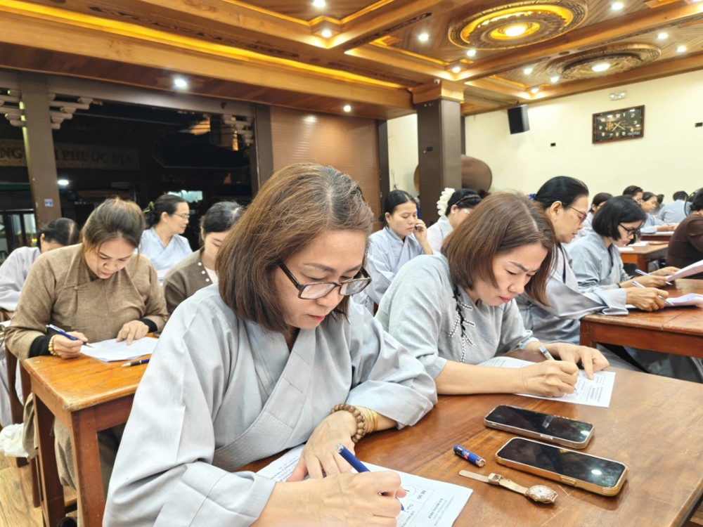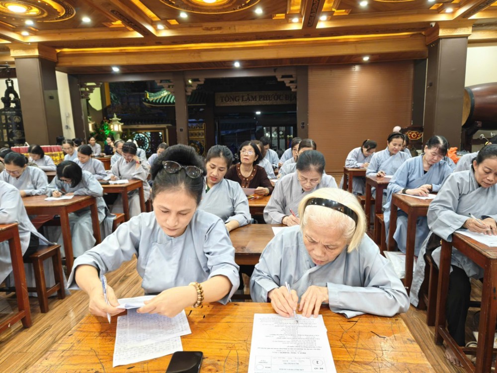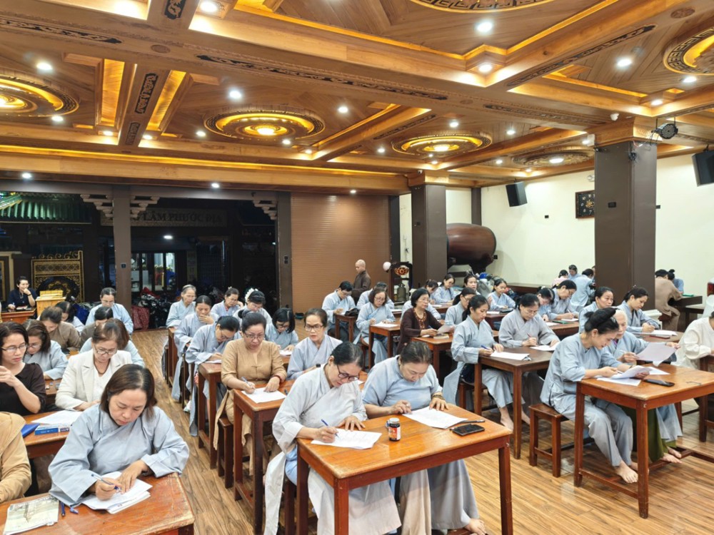Kỳ thi cuối khóa nhằm đánh giá lại kiến thức Phật pháp mà các học viên đã được học tập, ôn luyện trong suốt thời gian qua. Tuy nhiên, với người học Phật, thi cử không chỉ là kiểm tra kiến thức, mà còn là dịp quán chiếu lại sự thực hành và chuyển hóa tự thân – đúng như tinh thần lời Phật dạy: “Học để hành, hành để giải thoát.”