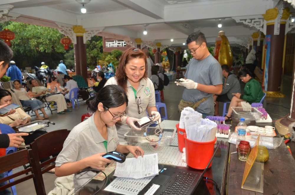 Dù thời tiết không thuận lợi, mưa to gió lớn kéo dài từ đêm hôm trước, thế nhưng với tinh thần từ Bi của những người con Phật, rất đông Tăng Ni cùng huynh trưởng, đoàn sinh Gia đình Phật tử và các đoàn sinh đã đến tham gia hiến máu.