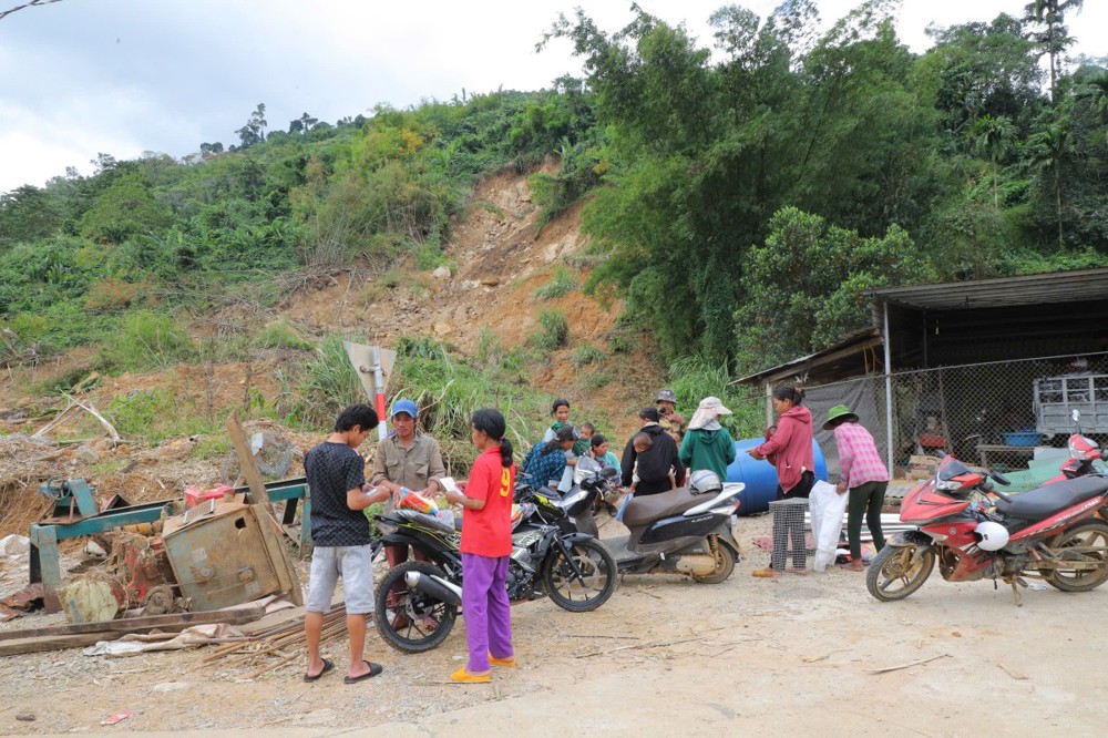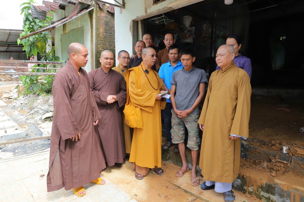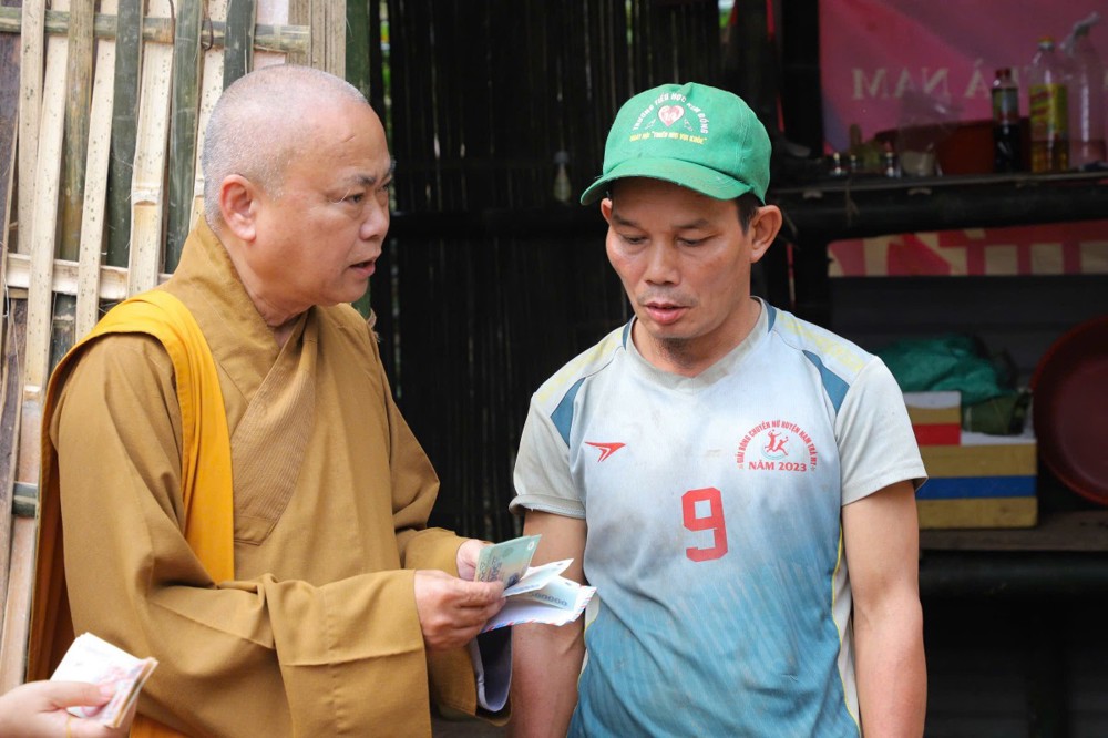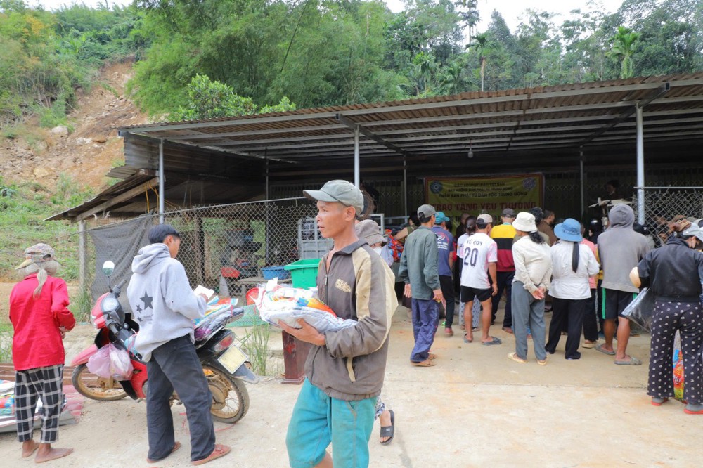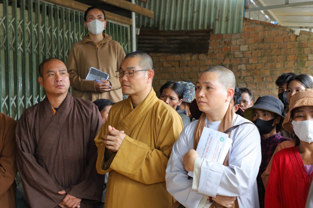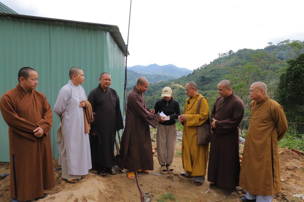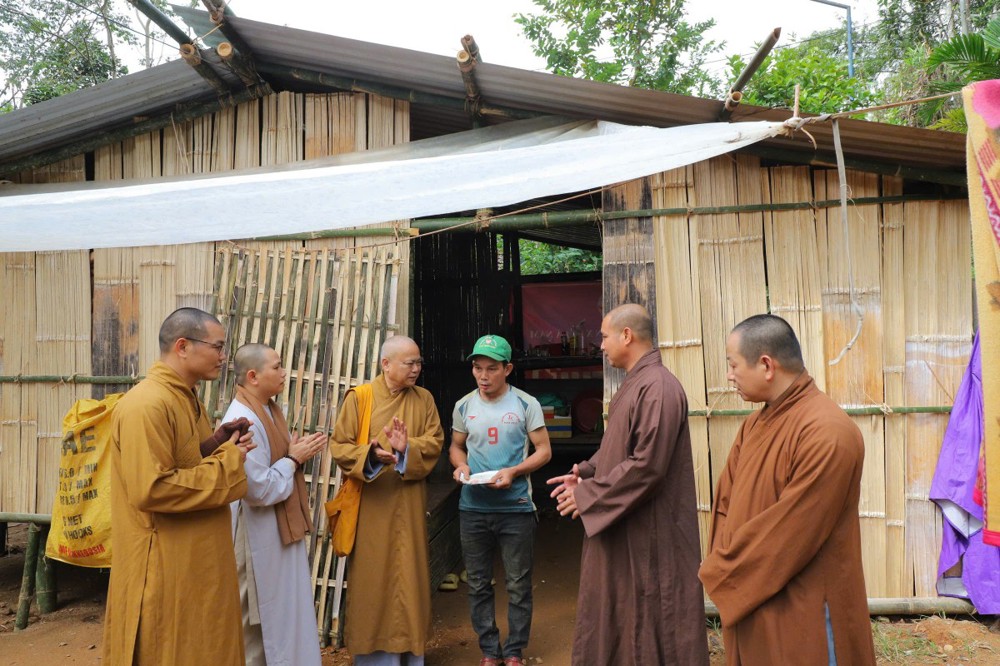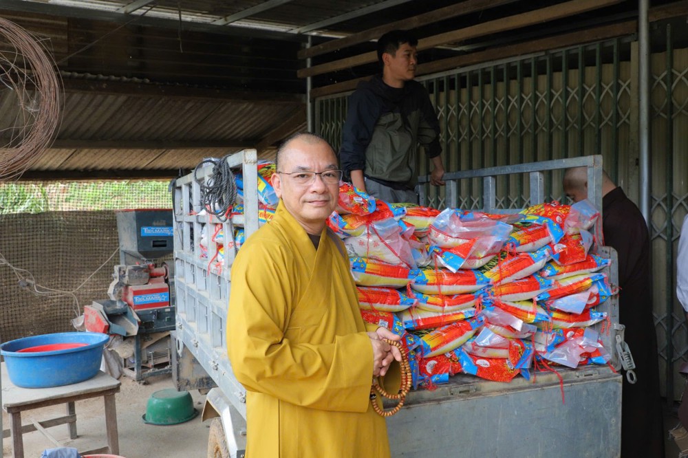 Phát biểu tại buổi trao tặng, Thượng tọa Thích Quảng Tuấn chia sẻ, những ngày qua, chúng tôi biết tin đồng bào nơi đây chịu nhiều thiệt hại do sạt lở đất, cuộc sống còn nhiều khó khăn. Mỗi phần quà hôm nay là tấm lòng của chư Tăng Ni, Phật tử khắp nơi gửi gắm, mong được sẻ chia phần nào mất mát với bà con. Tinh thần từ bi của đạo Phật không chỉ nằm trong lời kinh, mà còn thể hiện qua hành động giúp người, cứu khổ. Hy vọng bà con giữ vững niềm tin, cùng nhau vượt qua khó khăn để sớm ổn định cuộc sống.