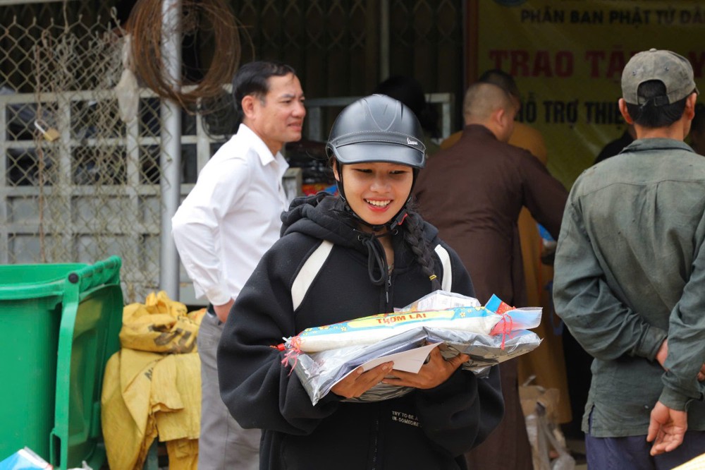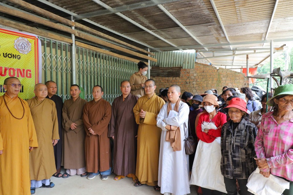 Trong không khí đầm ấm, thắm tình đạo vị, đoàn đã trao tặng 100 suất quà, mỗi suất trị giá 700.000 đồng gồm tiền mặt và các nhu yếu phẩm thiết yếu như gạo, quần áo ấm, thuốc men.