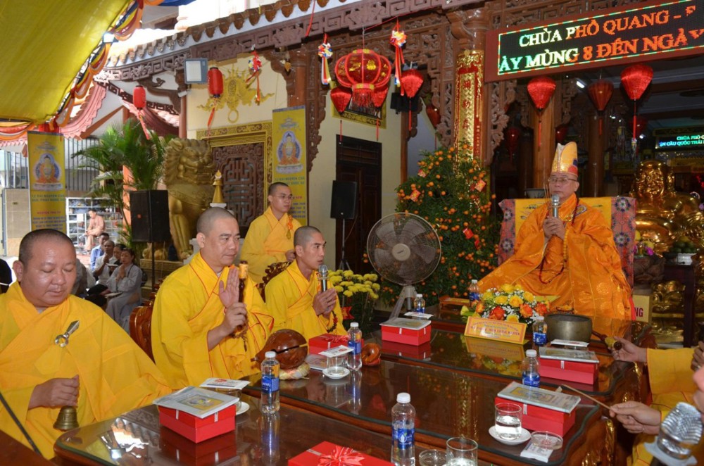 Đại đức Thích Huệ Trí – Uỷ viên Ban Trị sự GHPGVN Tp. Đà Nẵng, Trú trì chùa Phổ Quang, Trưởng ban tổ chức pháp hội đã cung thỉnh Thượng tọa Thích Lương Nguyên –Tri sự Tổ đình Tường Vân Tp. Huế; Thượng tọa Thích Thông Đạo – Trú trì chùa Bà Đa, Tp. Đà Nẵng; Thượng tọa Thích Pháp Châu – Trú trì chùa Huệ Quang, Tp. Đà Nẵng; Thượng tọa Thích Thông Đạo – Trú trì chùa Tân Thái, Tp. Đà Nẵng; Thượng tọa Thích Huệ Tánh – Trú trì chùa Nam Hải, Tp. Đà Nẵng; Thượng tọa Thích Thanh Nguyên – Trú trì Thiền viện Bồ Đề, Tp. Đà Nẵng ; Thượng tọa Thích Quảng Minh – Trú trì chùa An Phước, Tp. Đà Nẵng đương vị sám chủ đàn tràng Thất châu cùng chư Thượng tọa, Đại đức Tăng kinh sư; Thượng toạ Thích Huệ Thiện – Trú xứ Thiền Thất Tịnh Quang, Tp. Đà Nẵng đương vi công văn đàn tràng.