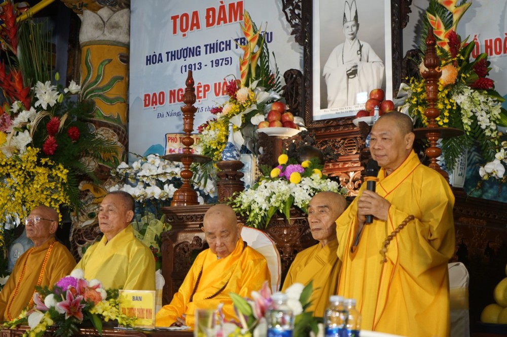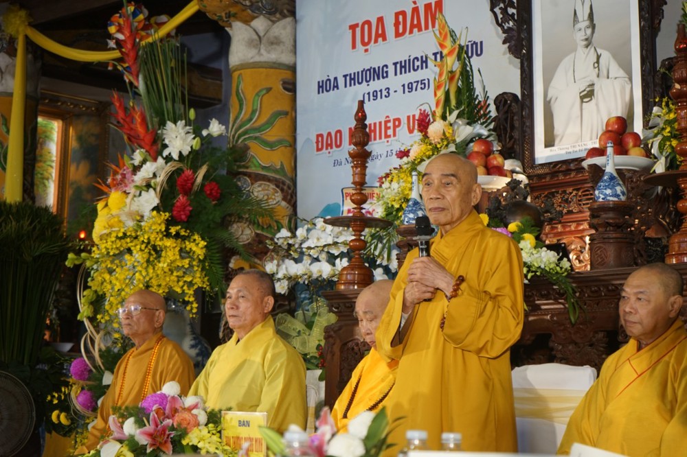 Trưởng lão Hòa thượng Thích Như Tín ban đạo từ tán thán việc tổ chức tọa đàm với tinh thần tri ân và báo ân của môn phong Tổ đình Linh Ứng rất ý nghĩa và đầy đủ.