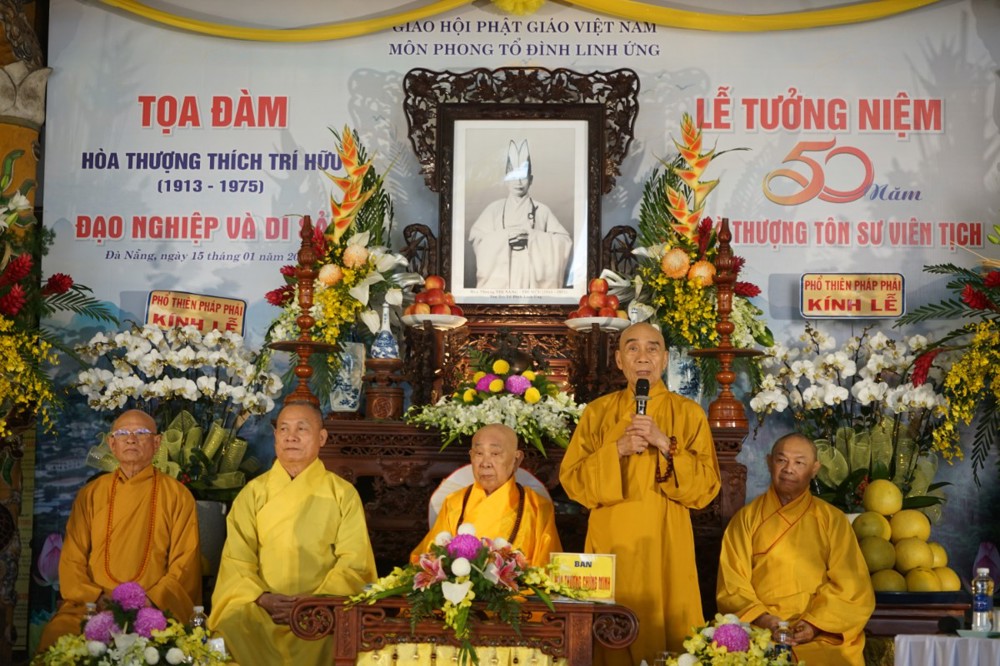 Phát biểu khai mạc, Hòa thượng Thích Thanh Thế đã chia sẻ: “Hôm nay nhân kỷ niệm 50 năm ngày Hòa thượng Thích Trí Hữu viên tịch, môn phong Tổ đình Linh ứng tổ chức buổi tọa đàm nhằm cùng nhau nhìn lại cuộc đời tu học và hành đạo của một bậc Cao Tăng đã trọn đời cống hiến cho đạo pháp và dân tộc… Buổi tọa đàm hôm nay là dịp để chúng ta cùng nhau chia sẻ, làm sáng tỏ hơn về hành trạng và những đóng góp toàn diện của Cố Hòa thượng, qua đó rút ra những giá trị thiết thực cho công cuộc hoằng pháp và giáo dục của Phật giáo hiện nay và mai sau…”.