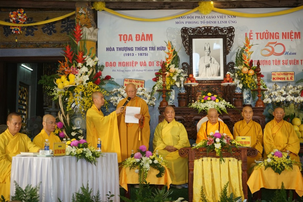Thượng tọa Thích Chúc Hiếu – Trú trì Tổ đình Linh Ứng đã thay mặt ban tổ chức dâng lời cảm tạ Chư tôn đức chứng minh, Chư Tôn đức Tăng Ni và đồng bào Phật tử đã đến chứng minh, tham dự buổi tọa đàm.