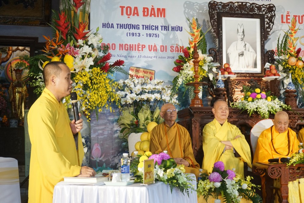 Chiều ngày 15/01/2026 (nhằm ngày 27/11 Ất Tỵ), tại Tổ đình Linh Ứng (phường Ngũ Hành Sơn, Tp Đà Nẵng) đã trang nghiêm tổ chức lễ tọa đàm và ra mắt, giới thiệu sách Hương Sơn Trí Hữu nhân dịp kỷ niệm 50 năm ngày Cố Hòa thượng Thích Trí Hữu viên tịch.