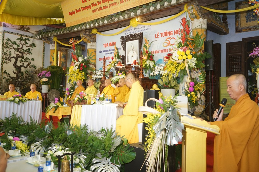 Tại buổi tọa đàm, Chư Tôn đức chứng minh cùng chư Tôn đức Tăng Ni tham dự đã có những lời chia sẻ ôn lại những đóng góp của Cố Hòa thượng cho Phật giáo nước nhà.
