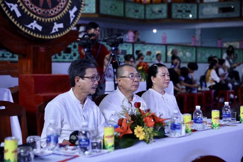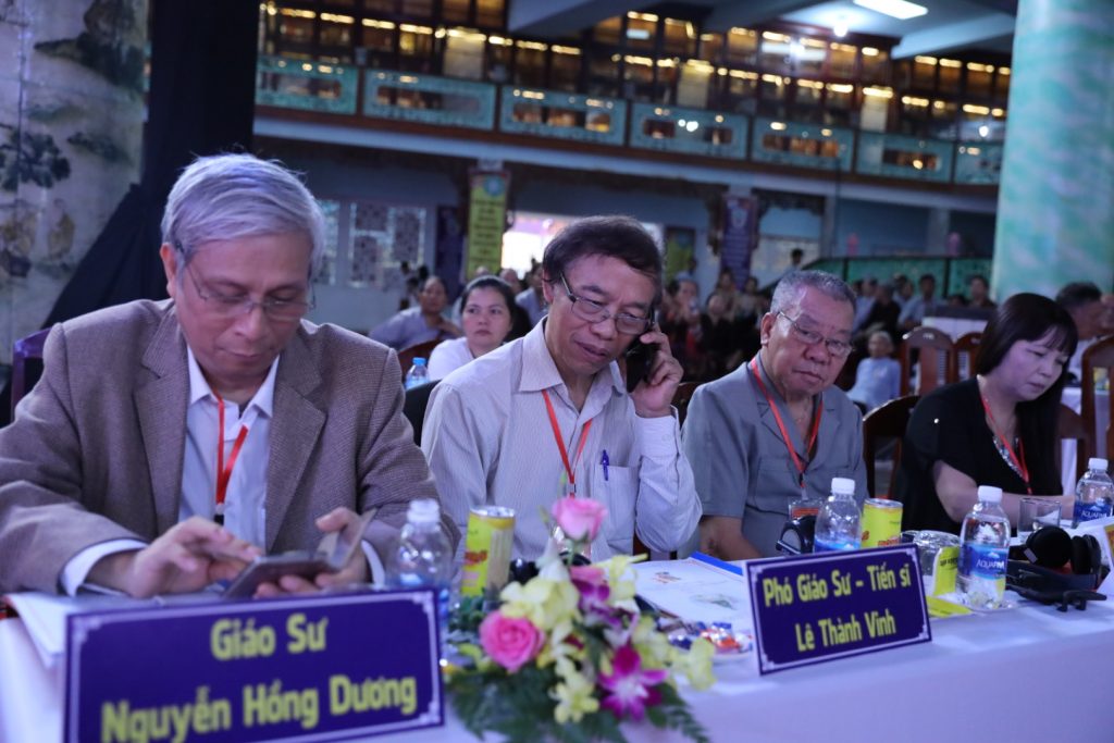 Phía quan khách có ông: ông Ngô Khôi- Phó GĐ Sở Nội vụ, Trưởng Ban Tôn giáo TP Đà Nẵng; GS.TS Đặng Văn Bài- UV Hội đồng Di sản VHQG; PGS.TS Nguyễn Hồng Dương- Nguyên Viện trưởng Viện Tôn giáo; PGS. TS Chu Văn Tuấn- Viện Trưởng Viện nghiên cứu Tôn giáo; Kiến trúc sư Lê Thành Vinh- Nguyên Viện trưởng Viện bảo tồn di tích QG; GS.TS. Trương Quốc Bình – UV Hội đồng di sản VHQG; PGS.TS. Ngô Văn Doanh – Nguyên Viện trưởng Viện nghiên cứu Đông Nam Á; ông Trần Kỳ Phương- Chuyên gia nghiên cứu VH Champa; Ths Nguyễn Thị Thu Hoan- Bảo tàng LSQG; cùng chư Tôn đức thành viên Ban VHTƯ; quý vị Giáo sư, Tiến sĩ, các nhà nghiên cứu học giả đồng tham gia buổi tạo đàm.